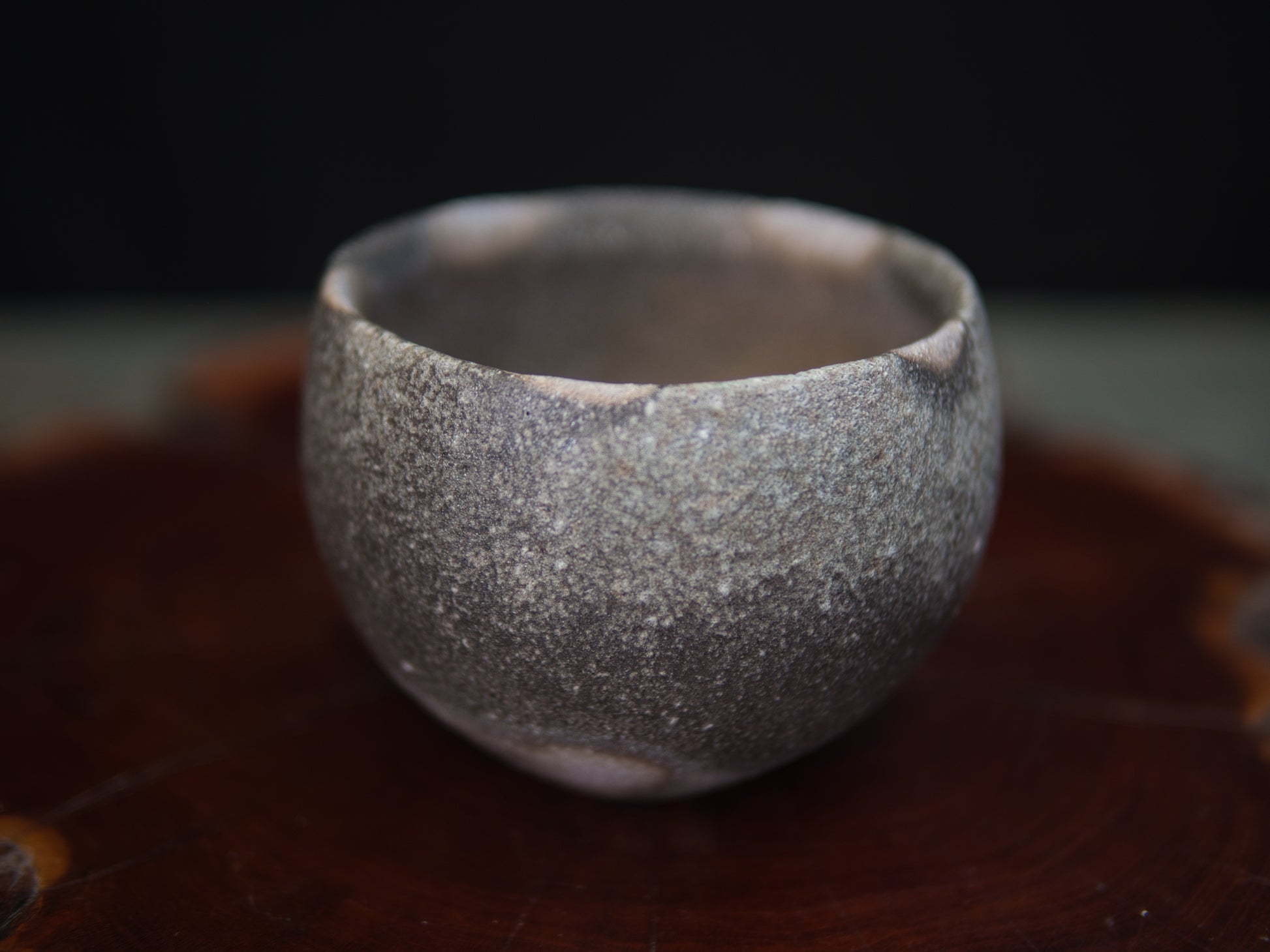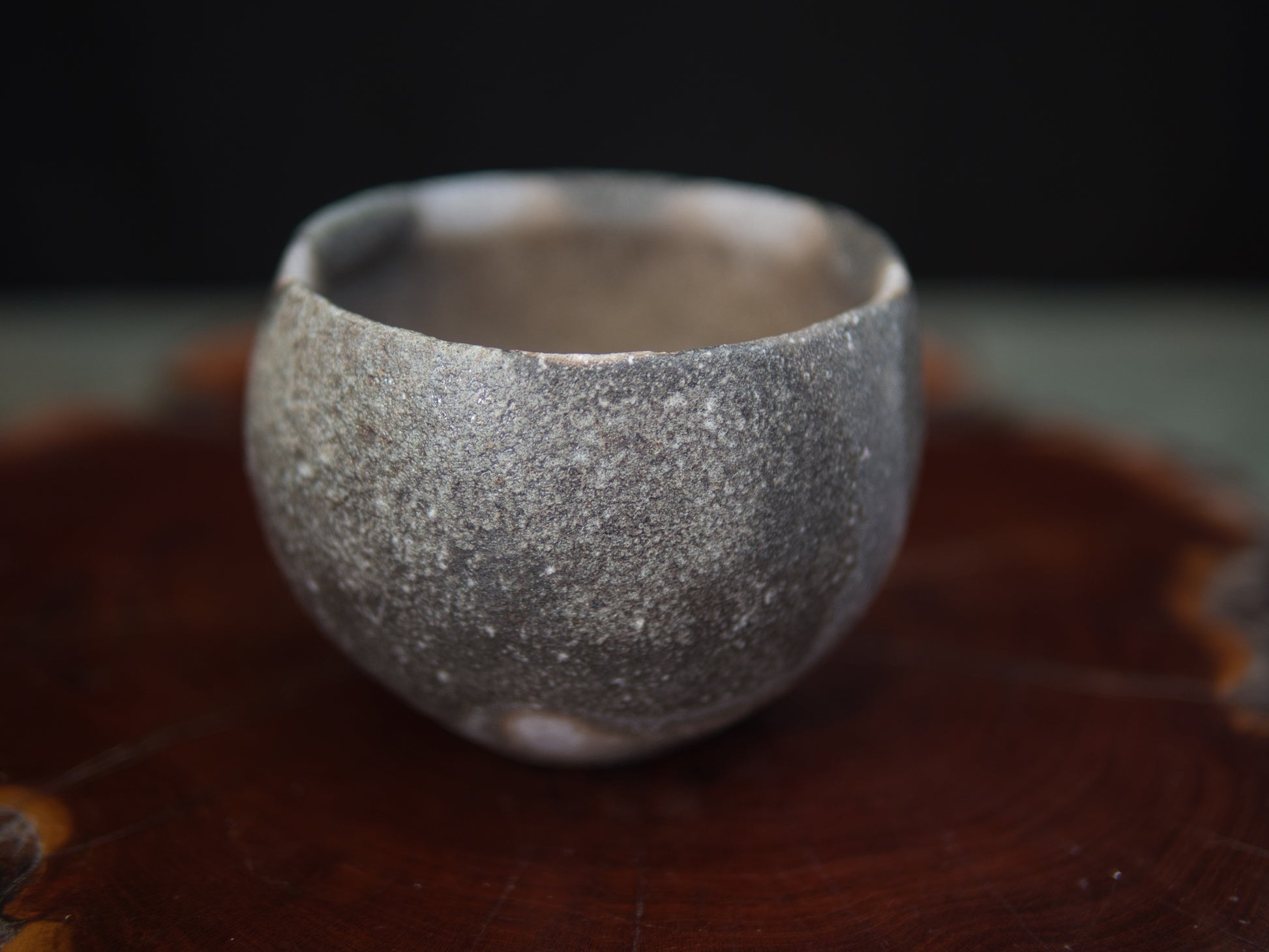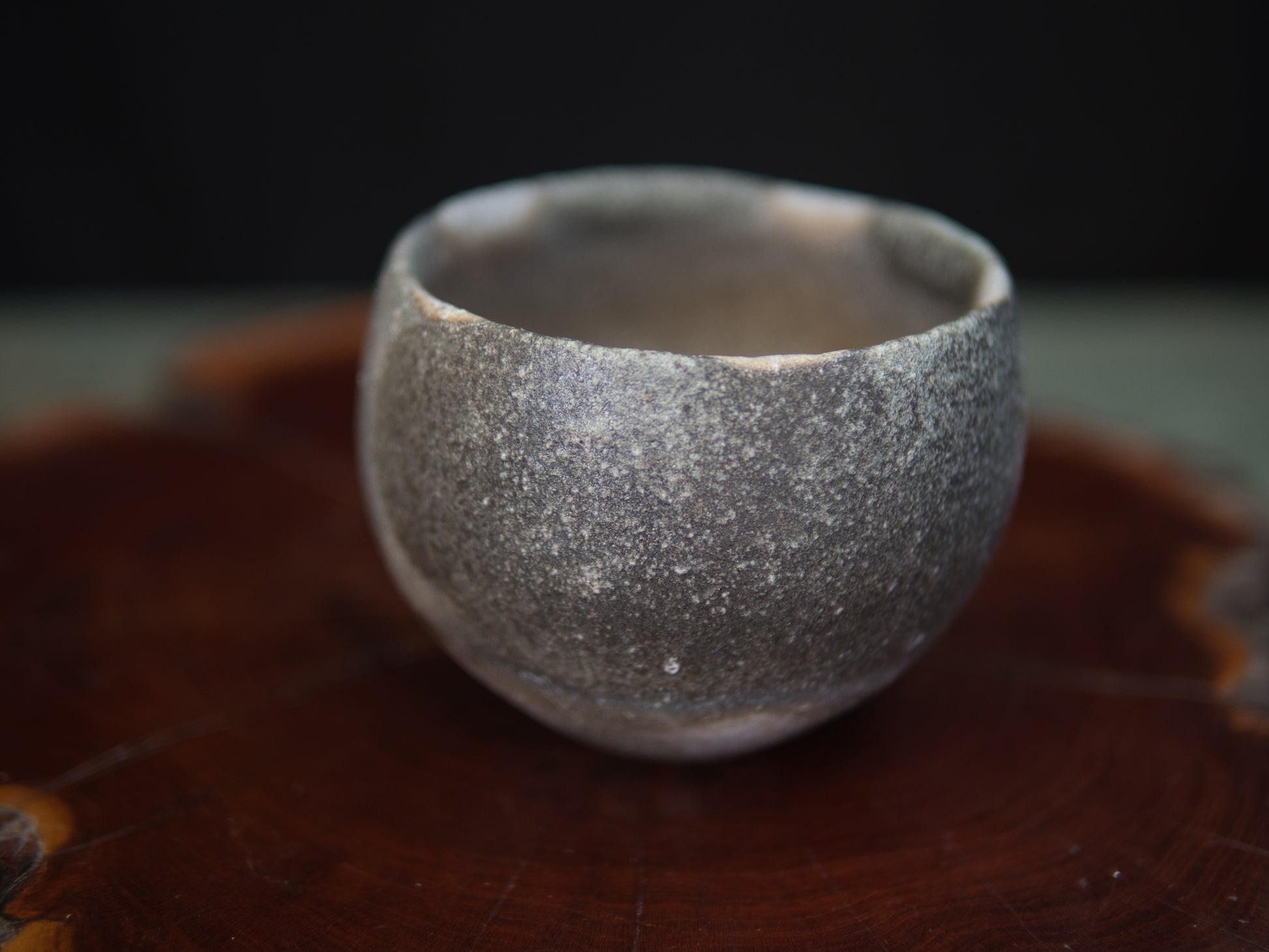Dieser Teebecher hat ein Fassungsvermögen von ca. 200ml und wurde im Freihandaufbau gefertigt. Leichte Asymmetrien verleihen dem Becher eine natürliche Erscheinung. Die raue Oberfläche hat eine rustikale Haptik, die Ascheanflugglasur hat innen und außen ein natürliches und einzigartiges Dekor hinterlassen.