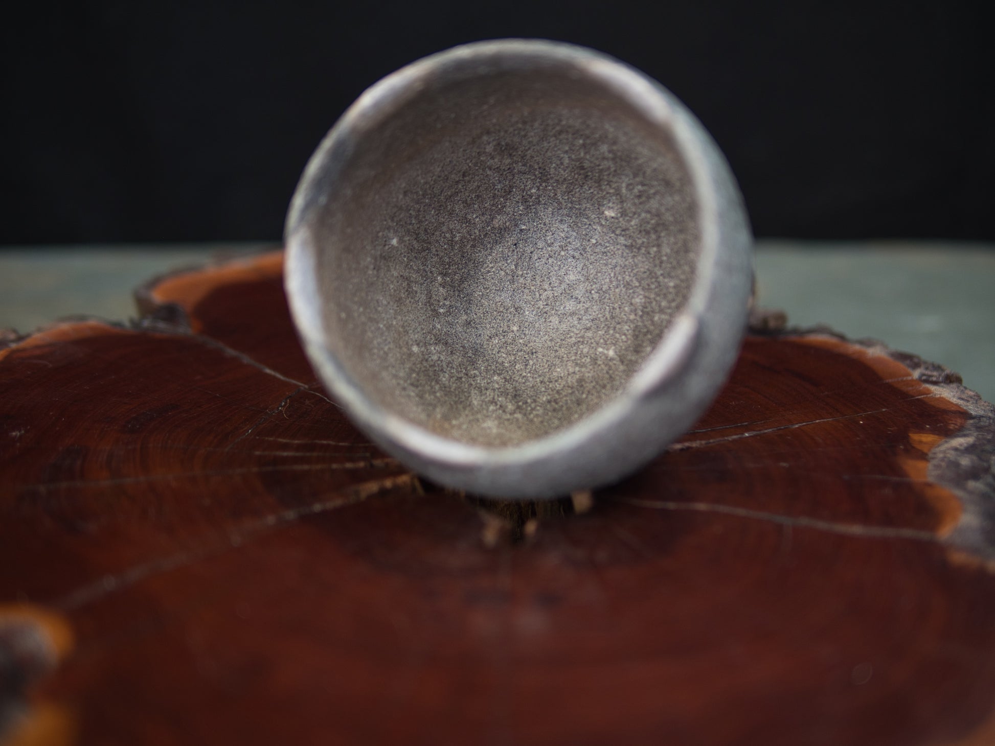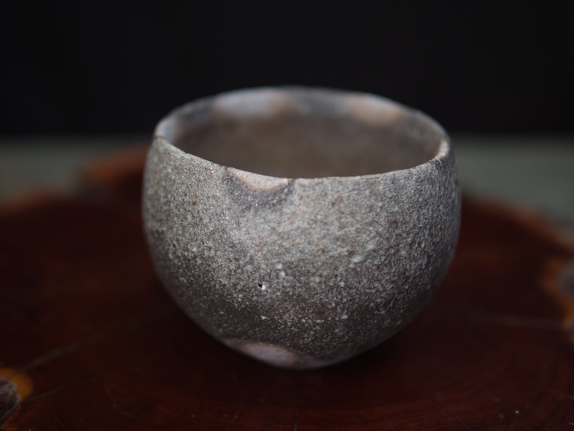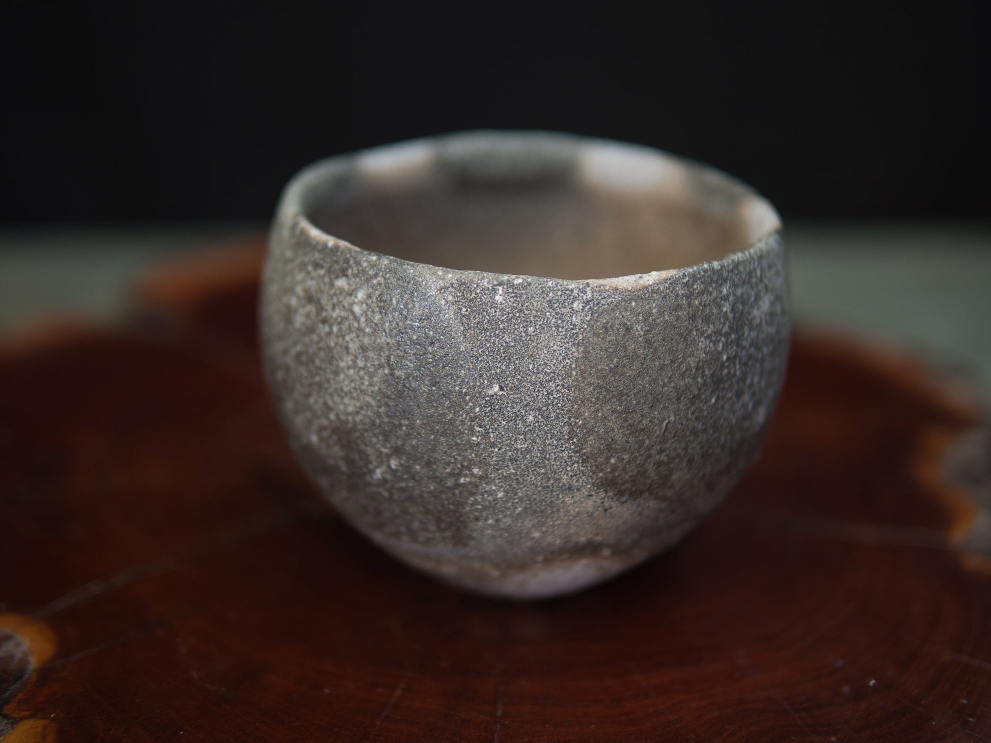 Dieser Teebecher hat ein Fassungsvermögen von ca. 200ml und wurde im Freihandaufbau gefertigt. Leichte Asymmetrien verleihen dem Becher eine natürliche Erscheinung. Die raue Oberfläche hat eine rustikale Haptik, die Ascheanflugglasur hat innen und außen ein natürliches und einzigartiges Dekor hinterlassen.