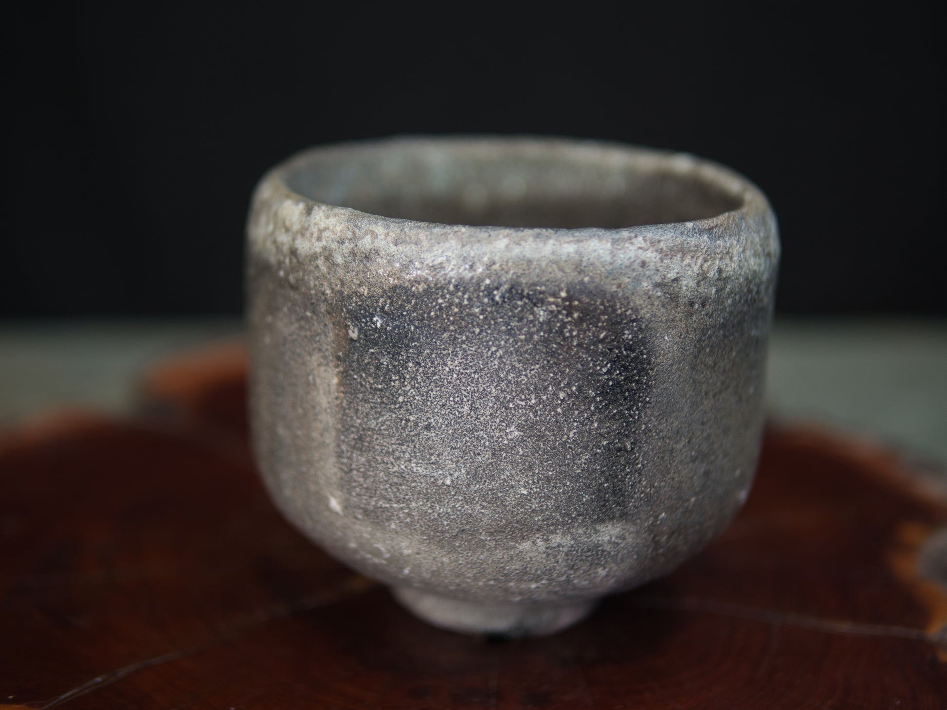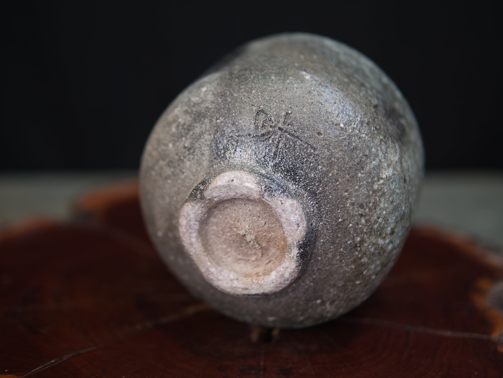 Gefertigt wurde die Chawan im Freihandaufbau, ähnlich wie Raku. Dadurch bekam die Chawan ihre weichen, unebenen Rundungen, wodurch sie sich gut in die Hände fügt. Der Brand und die im Ofen zirkulierende Asche haben eine einzigartige "Landschaft" sowohl innen als auch außen auf der Chawan hinterlassen, daher lohnt es sich, sie aus verschiedenen Perspektiven zu betrachten. Die Schale wurde in der han-tsutsu-Form getöpfert und ist daher etwas niedriger, fügt sich aber sehr gut in die Hände. Dieses Stück wurde von Frau Sanae Kondô gefertigt und wird mit einer handsignierten Holzbox (tomobako) geliefert.