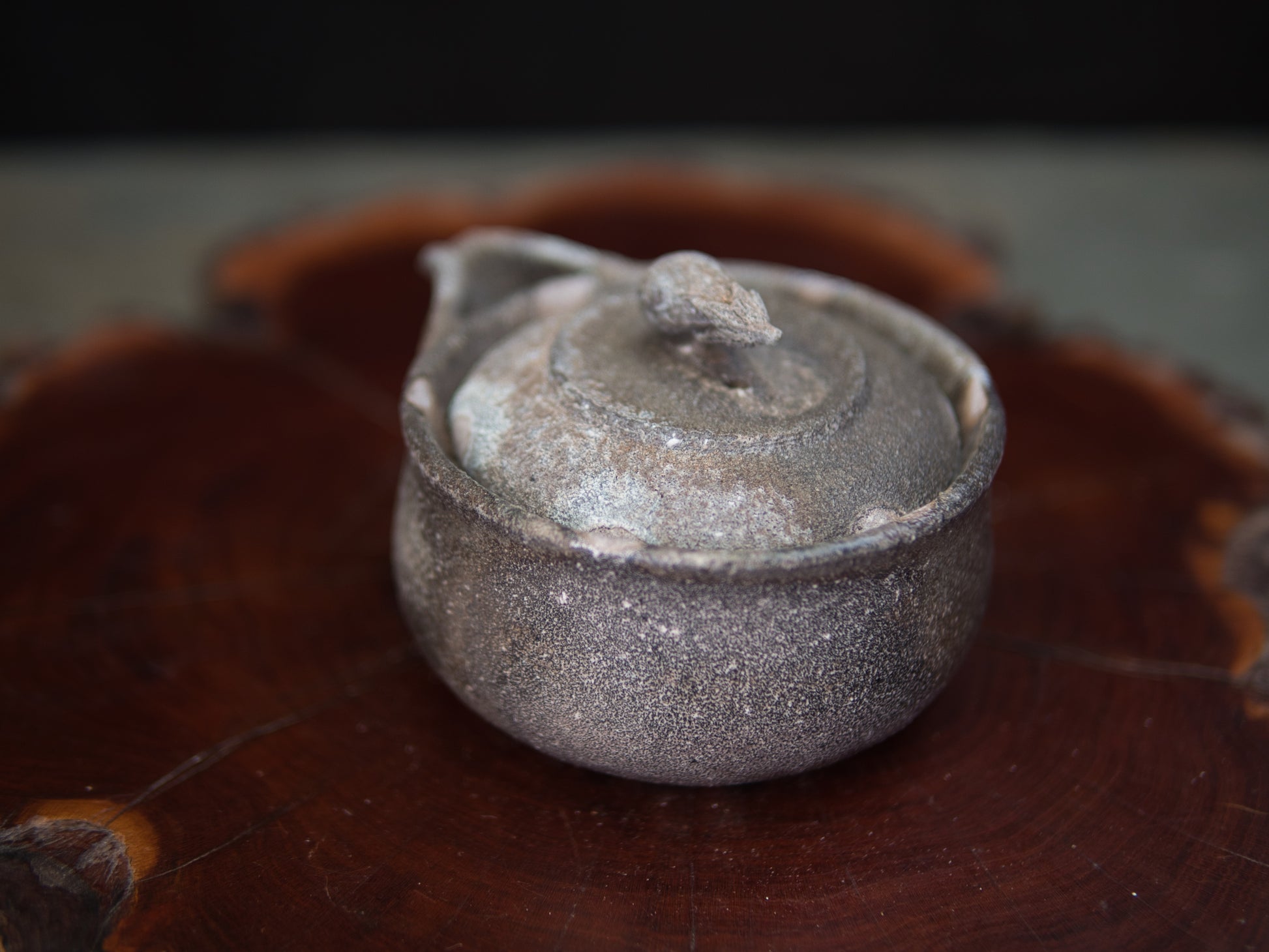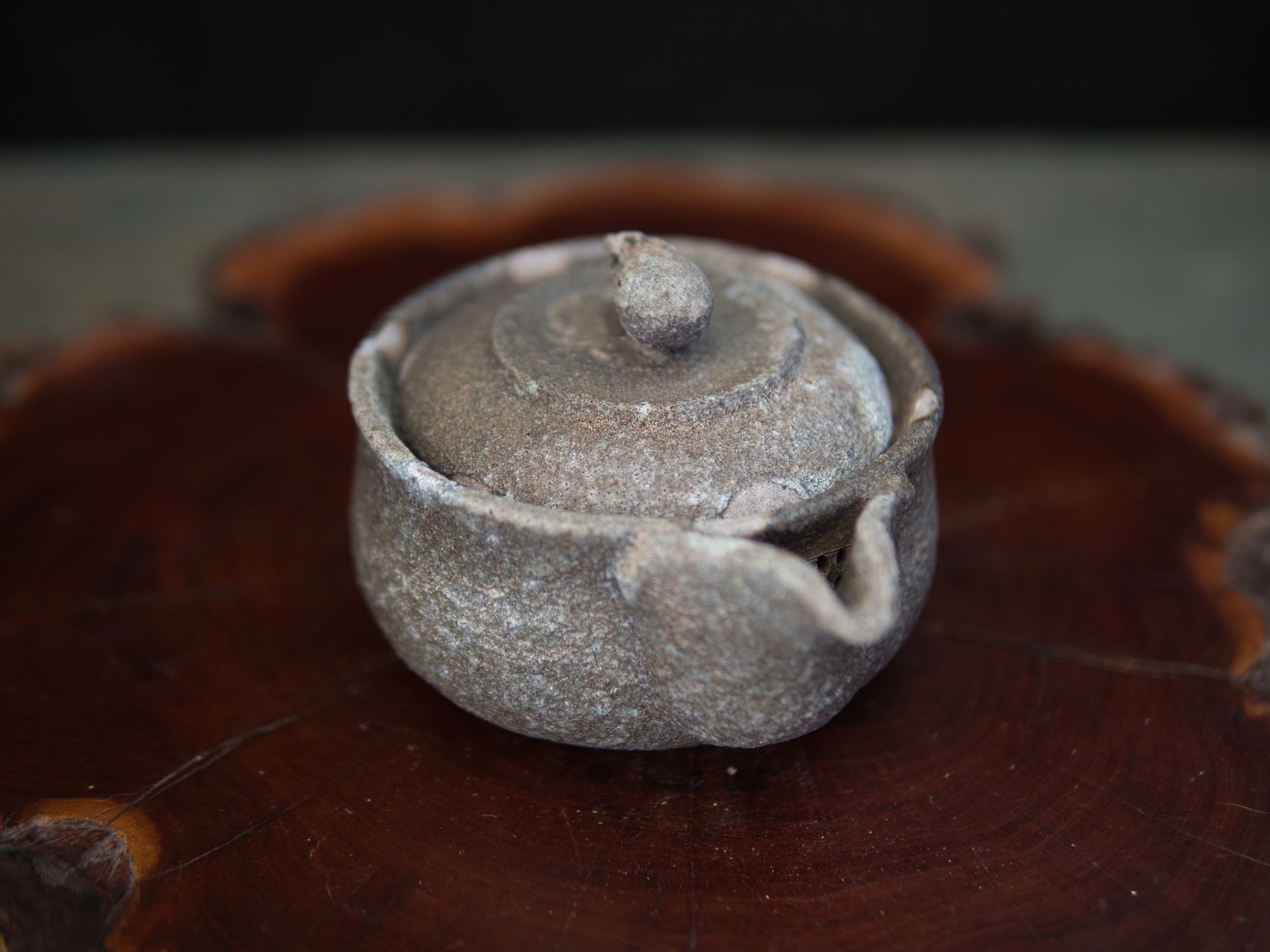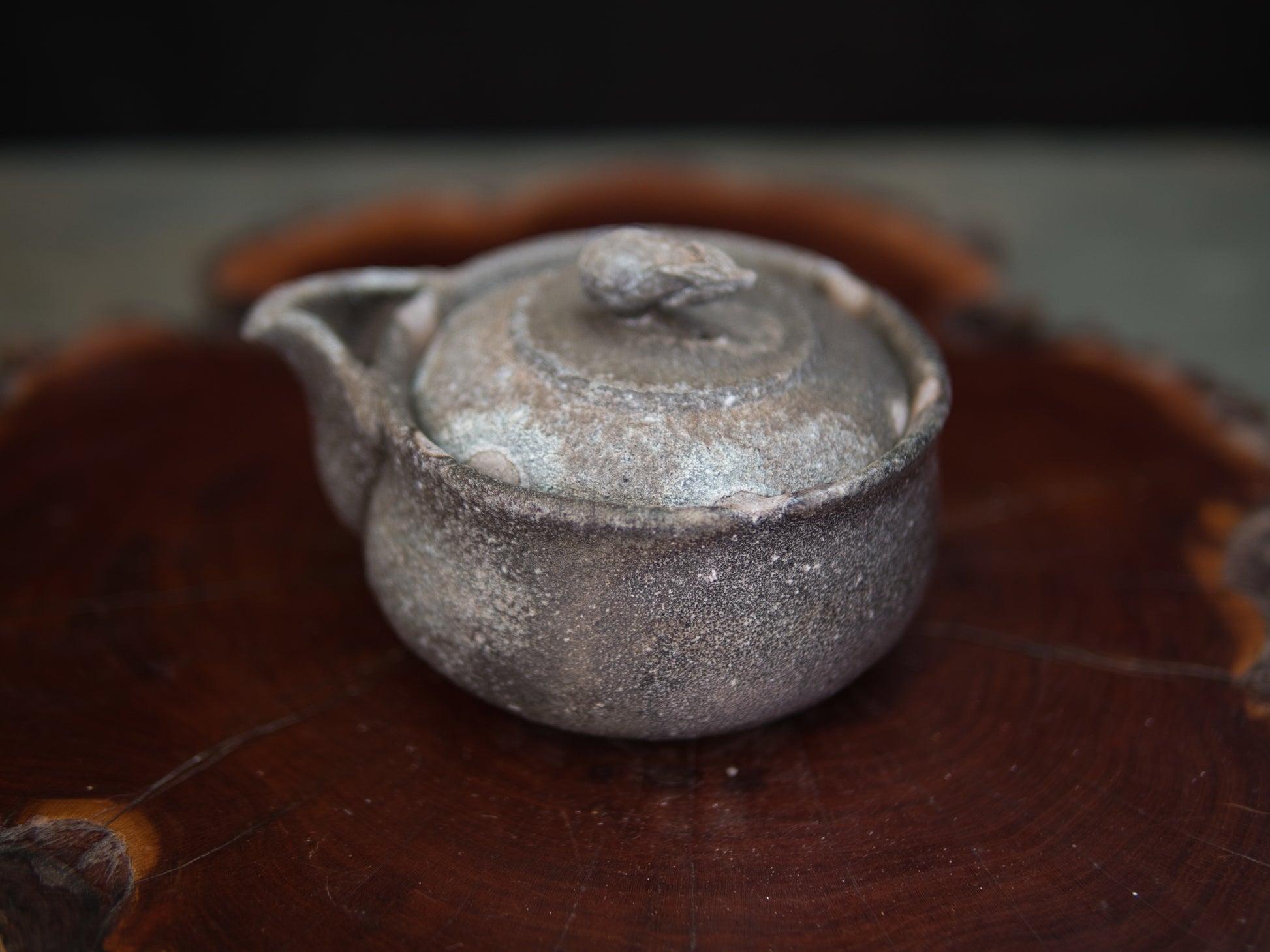 Diese Hôhin trägt eine schöne und abwechslungsreiche Ascheanflugglasur. Typisch für Hôhin sind kreativ gestaltete Deckelgriffe. In diesem Fall handelt es sich um einen Flaschenkürbis, der ein beliebtes Motiv in der japanischen Kunstszene ist. Mit 100 ml ist die Hôhin gut für die Mehrfachaufgussmethode geeignet. Sie liegt gut in der Hand und vermittelt durch ihr Gewicht eine wertige Haptik.