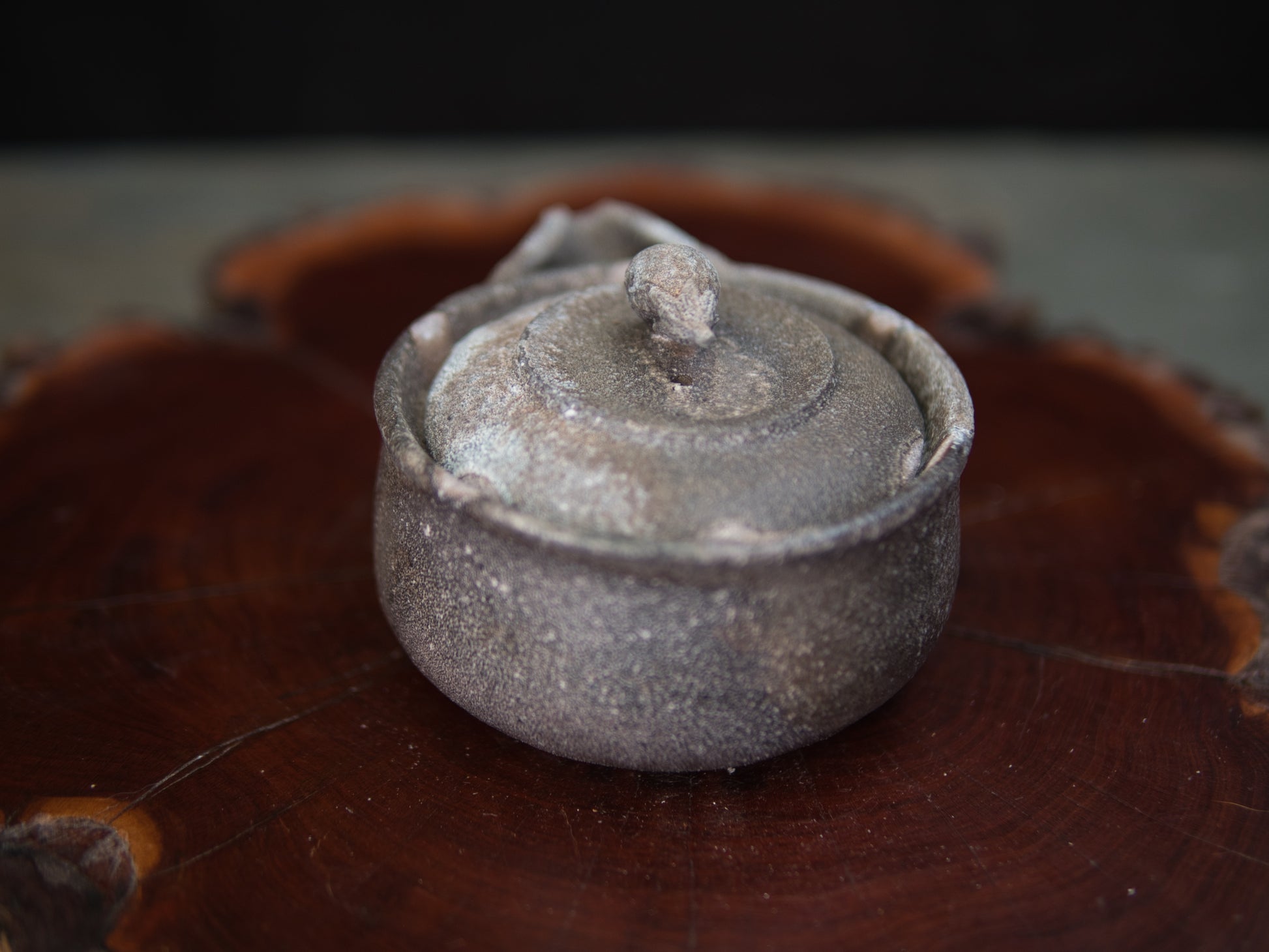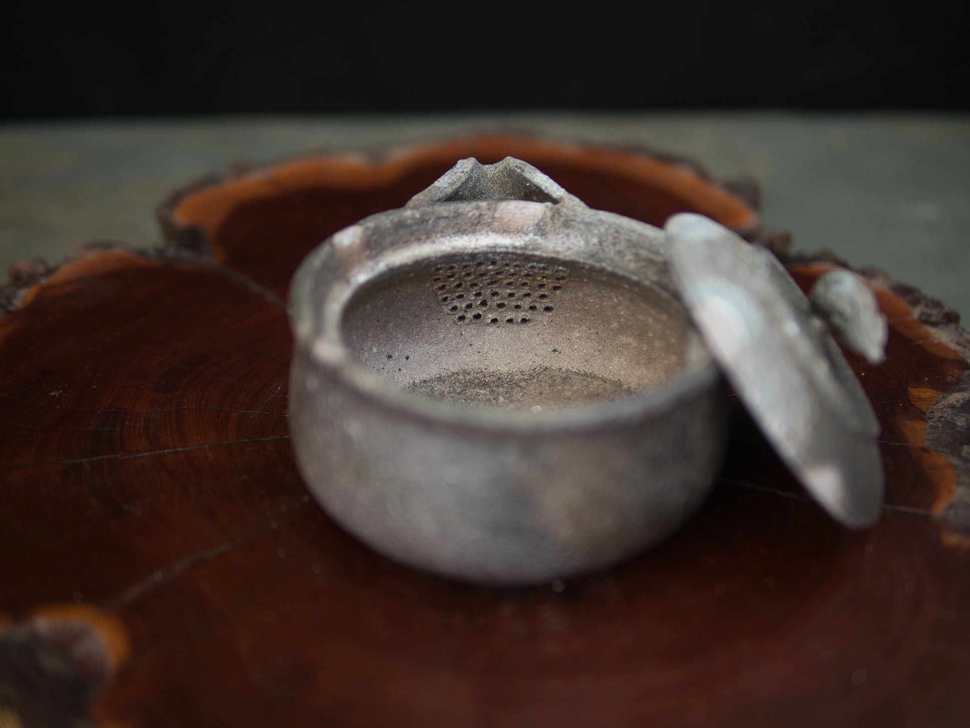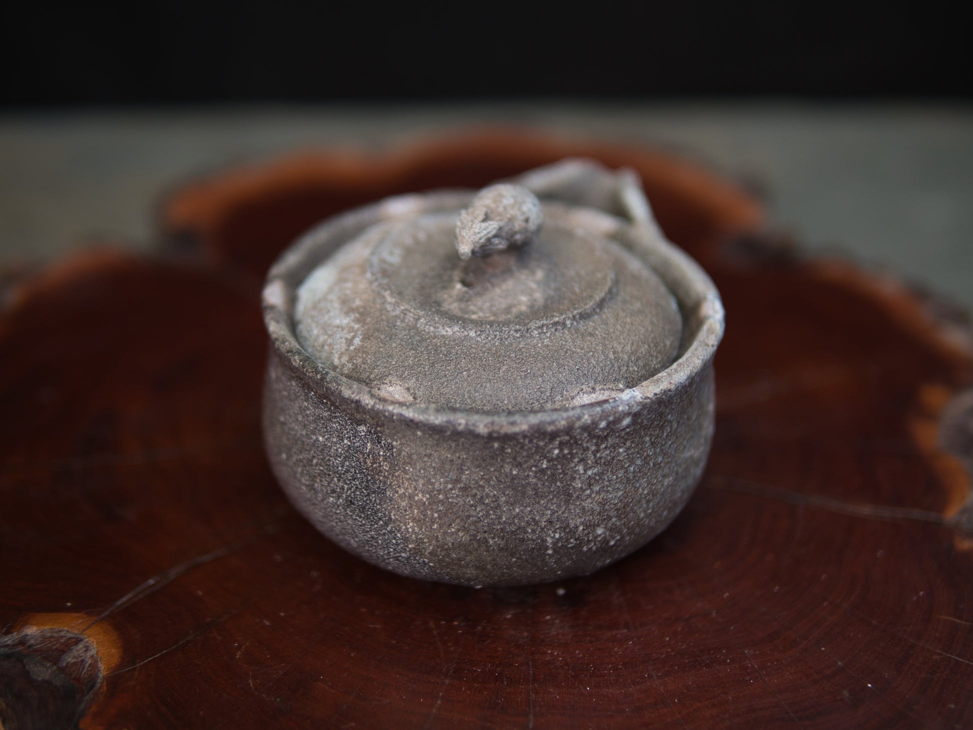 Diese Hôhin trägt eine schöne und abwechslungsreiche Ascheanflugglasur. Typisch für Hôhin sind kreativ gestaltete Deckelgriffe. In diesem Fall handelt es sich um einen Flaschenkürbis, der ein beliebtes Motiv in der japanischen Kunstszene ist. Mit 100 ml ist die Hôhin gut für die Mehrfachaufgussmethode geeignet. Sie liegt gut in der Hand und vermittelt durch ihr Gewicht eine wertige Haptik.