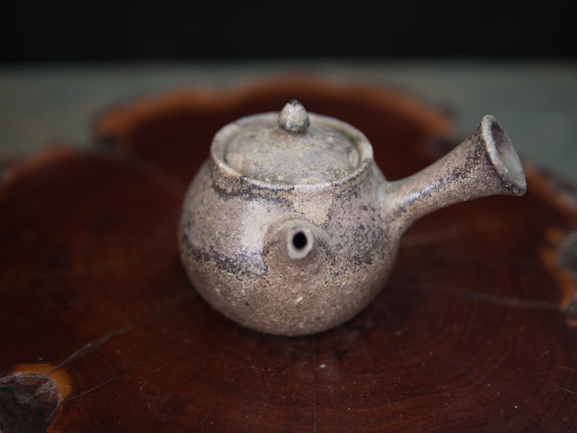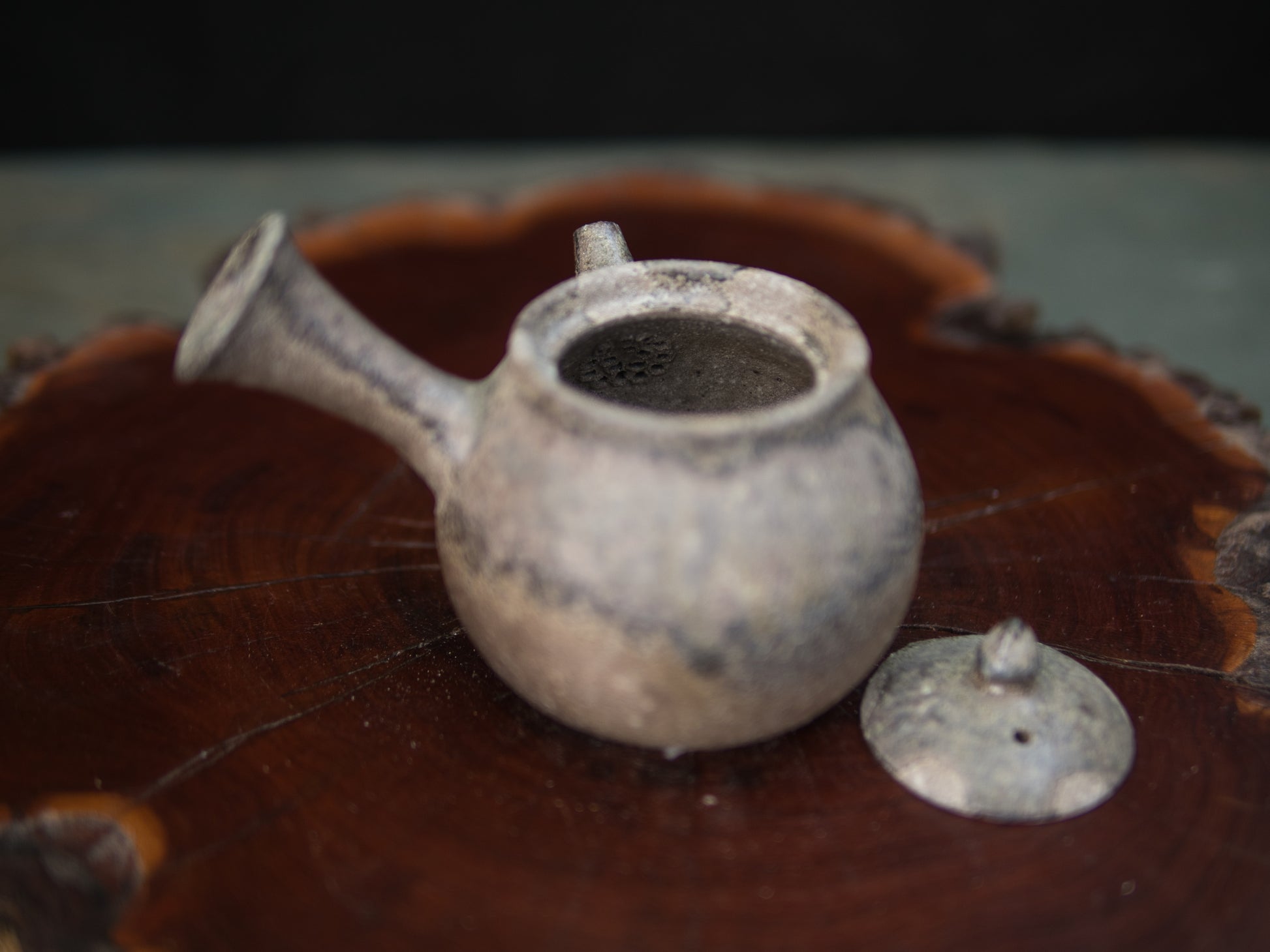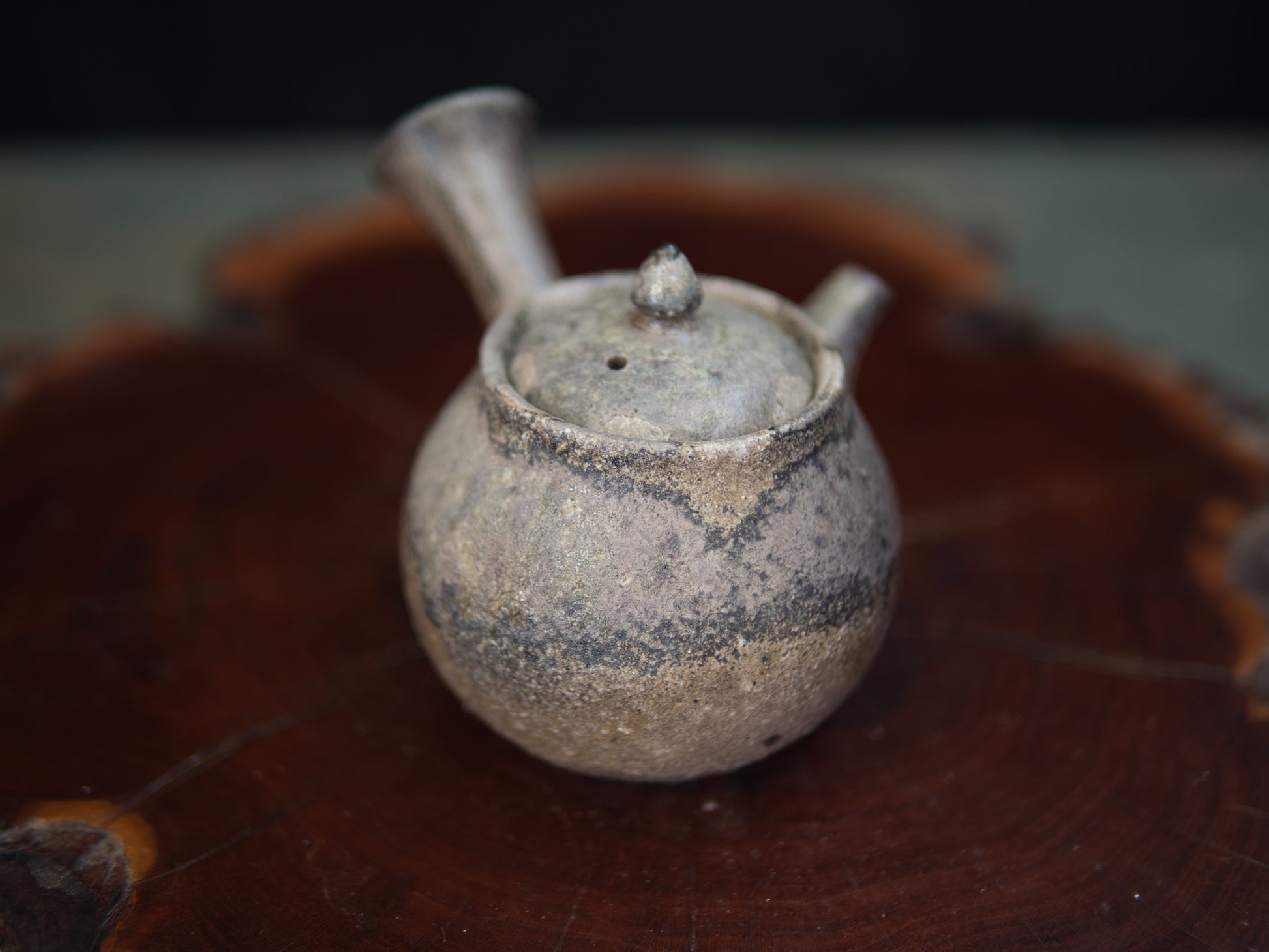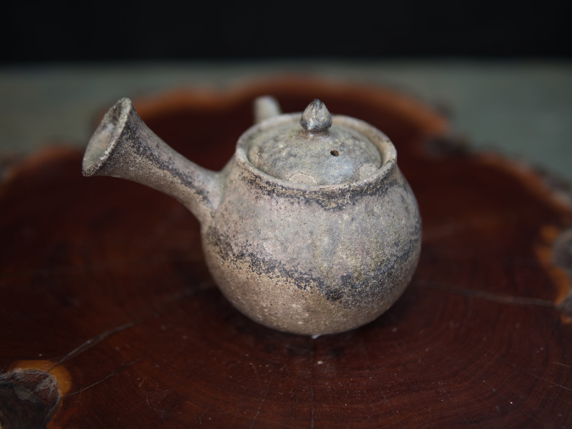 Diese Kanne ist eine klassische Seitengriffkanne, die man in Japan kyûsu nennt. Mit 110 ml ist sie gut für Mehrfachaufgüsse einsetzbar, bei denen eine intensivere Dosierung im Fokus steht. Daher eignet sie sich besonders für beschattete Teesorten wie Kabusecha und Gyokuro. Die Ascheanflugglasur fällt je nach Objekt und Platzierung einzigartig aus und macht aus jedem Stück ein Unikat. Diese Kanne ist ein Einzelstück und entspricht den Fotos.