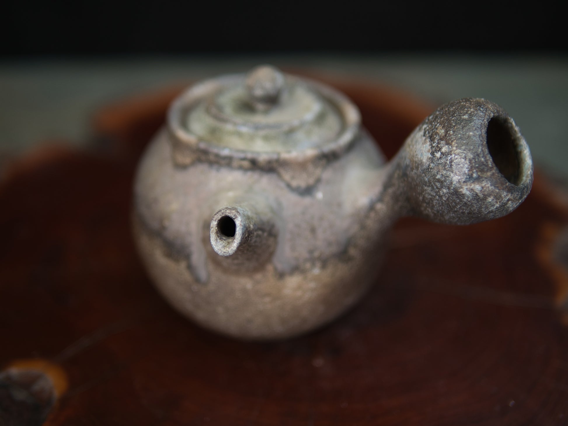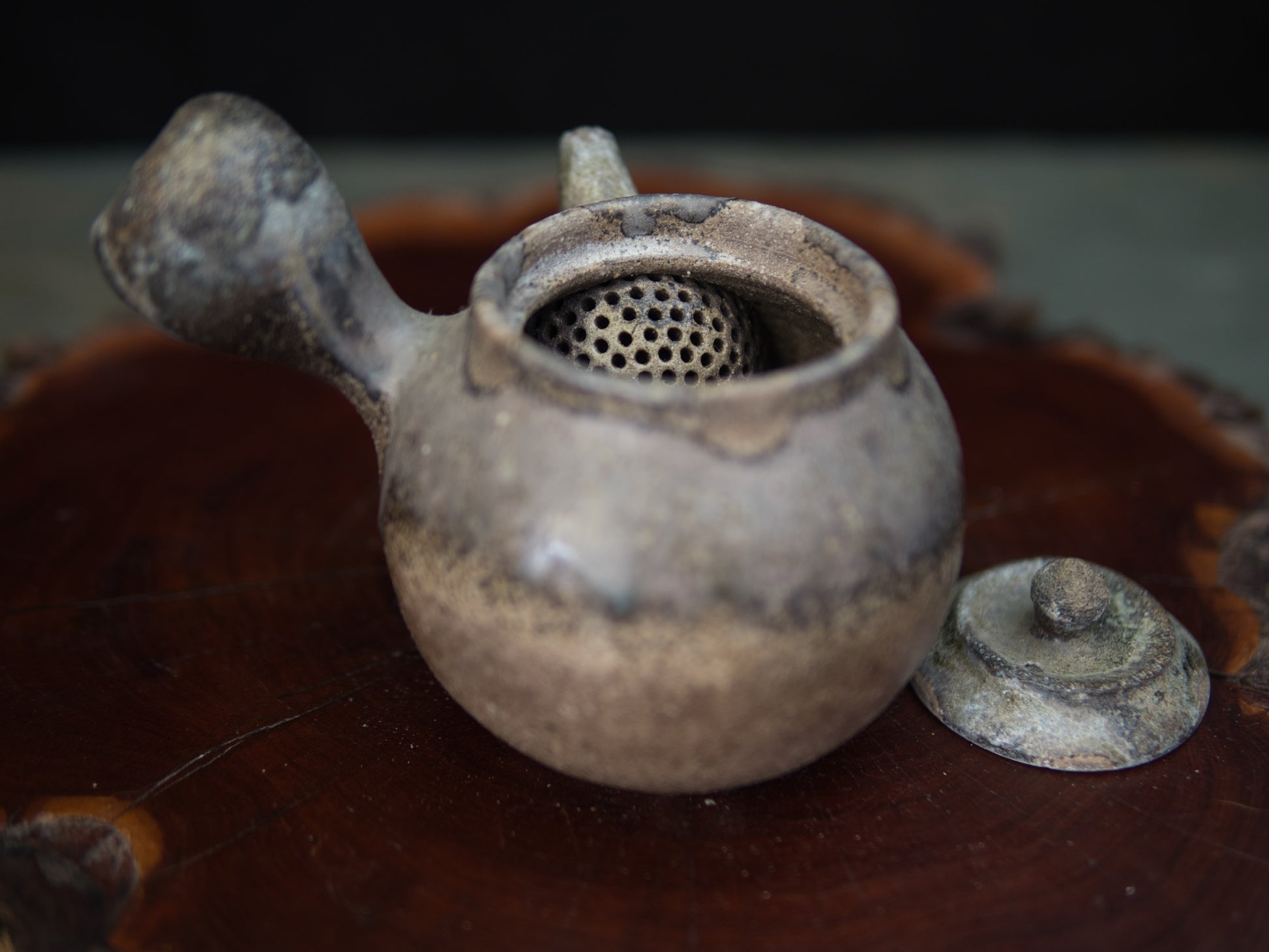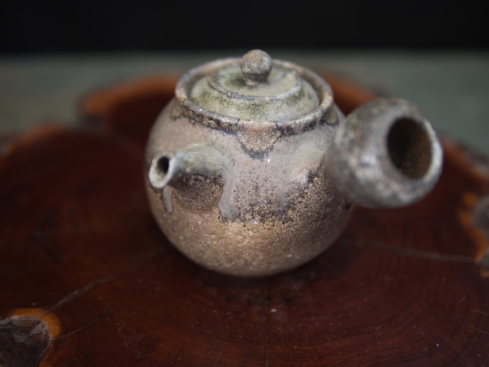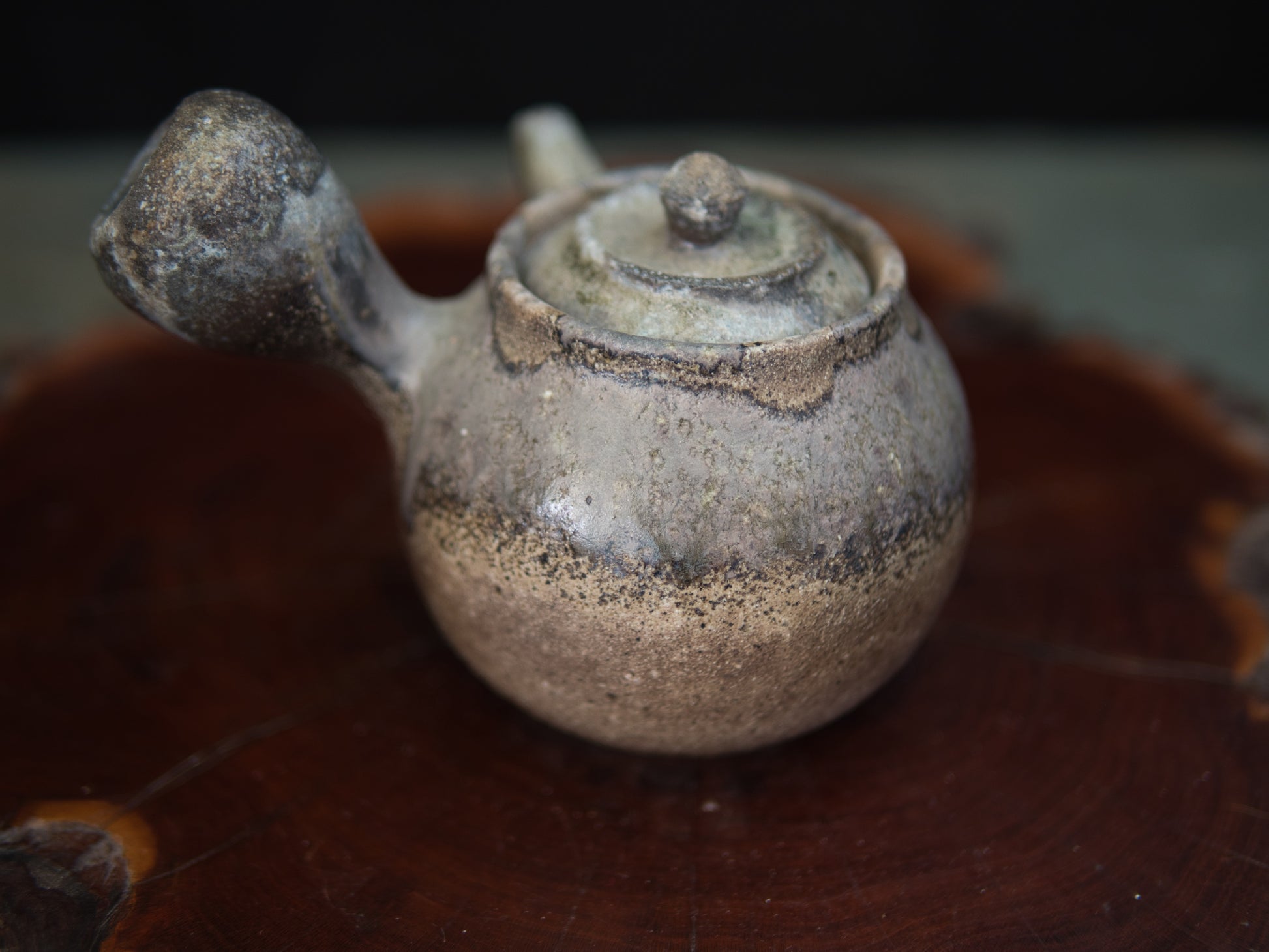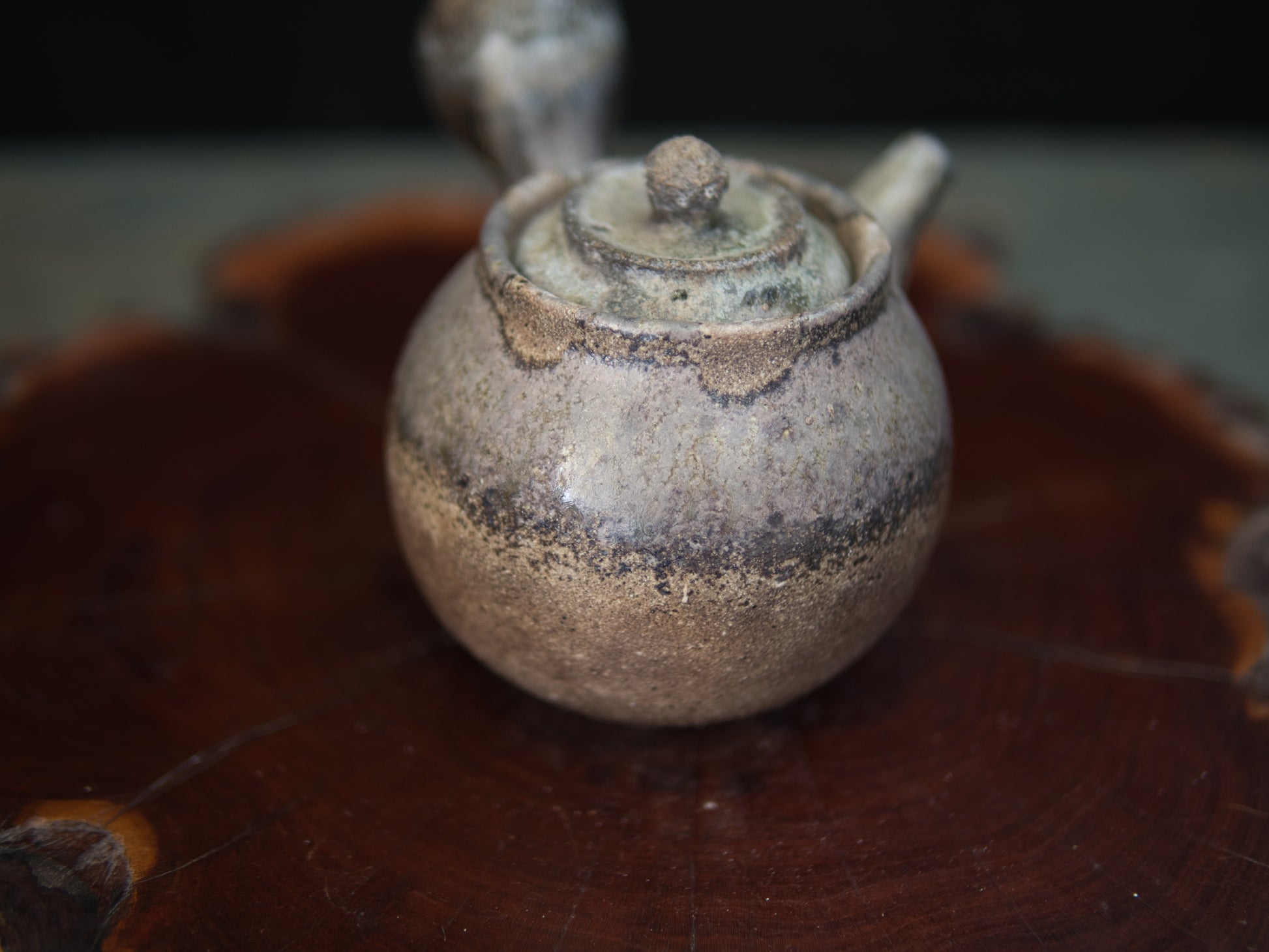 Diese Kanne ist eine klassische Seitengriffkanne, die man in Japan kyûsu nennt. Mit 180 ml ist sie gut für Mehrfachaufgüsse einsetzbar. Daher eignet sie sich besonders für beschattete Teesorten wie Kabusecha oder gute Sencha. Die Ascheanflugglasur fällt je nach Objekt und Platzierung einzigartig aus und macht aus jedem Stück ein Unikat. Diese Kanne ist ein Einzelstück und entspricht den Fotos.