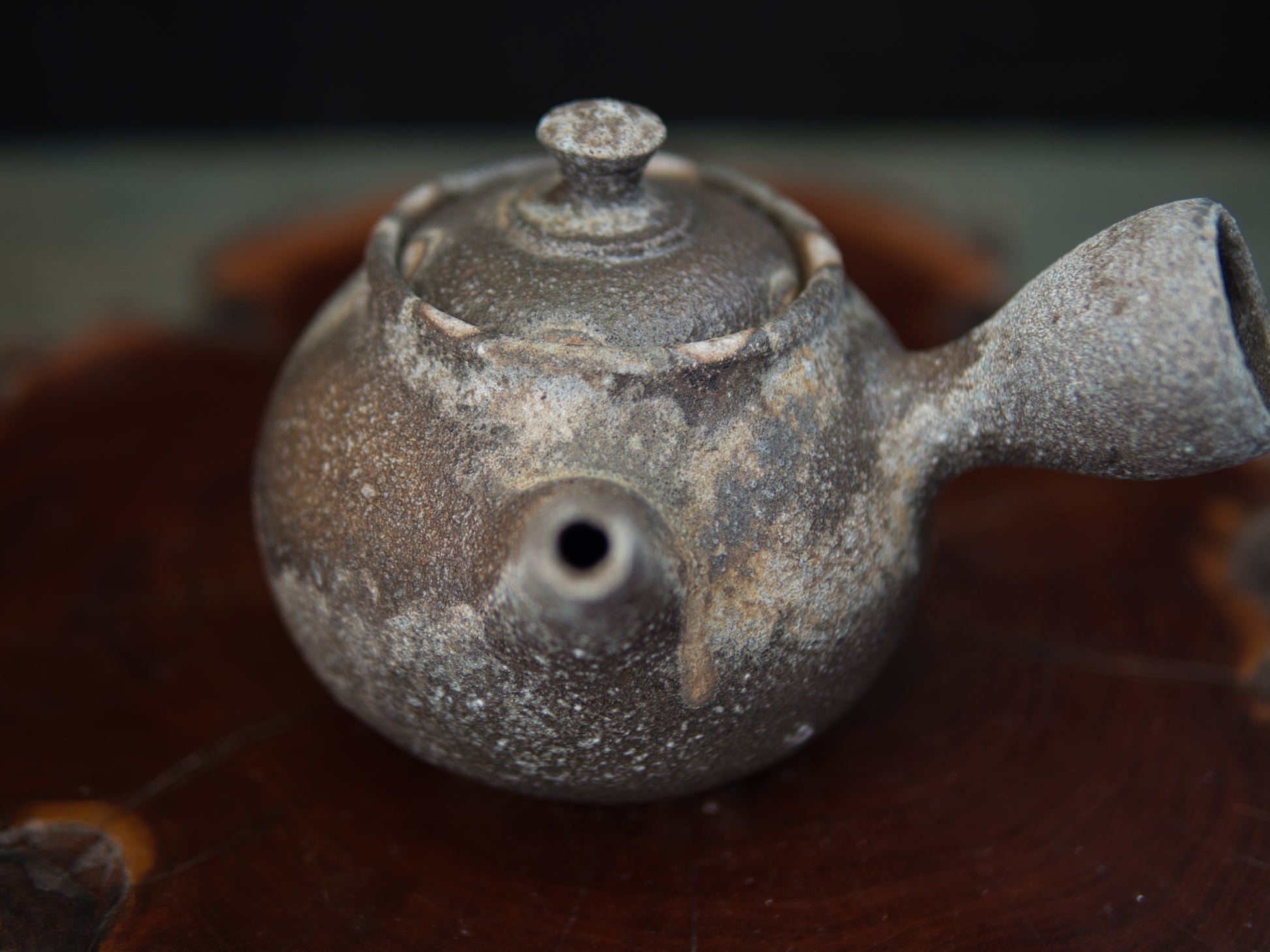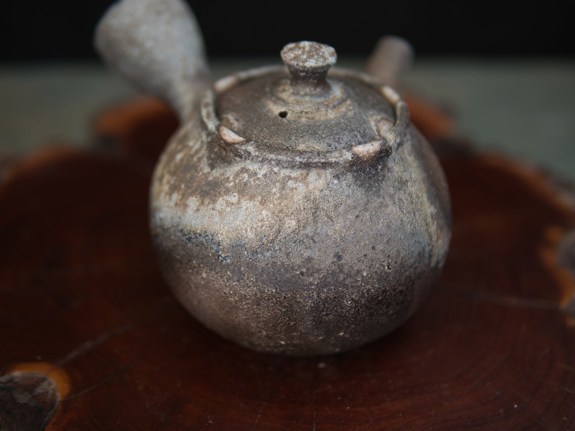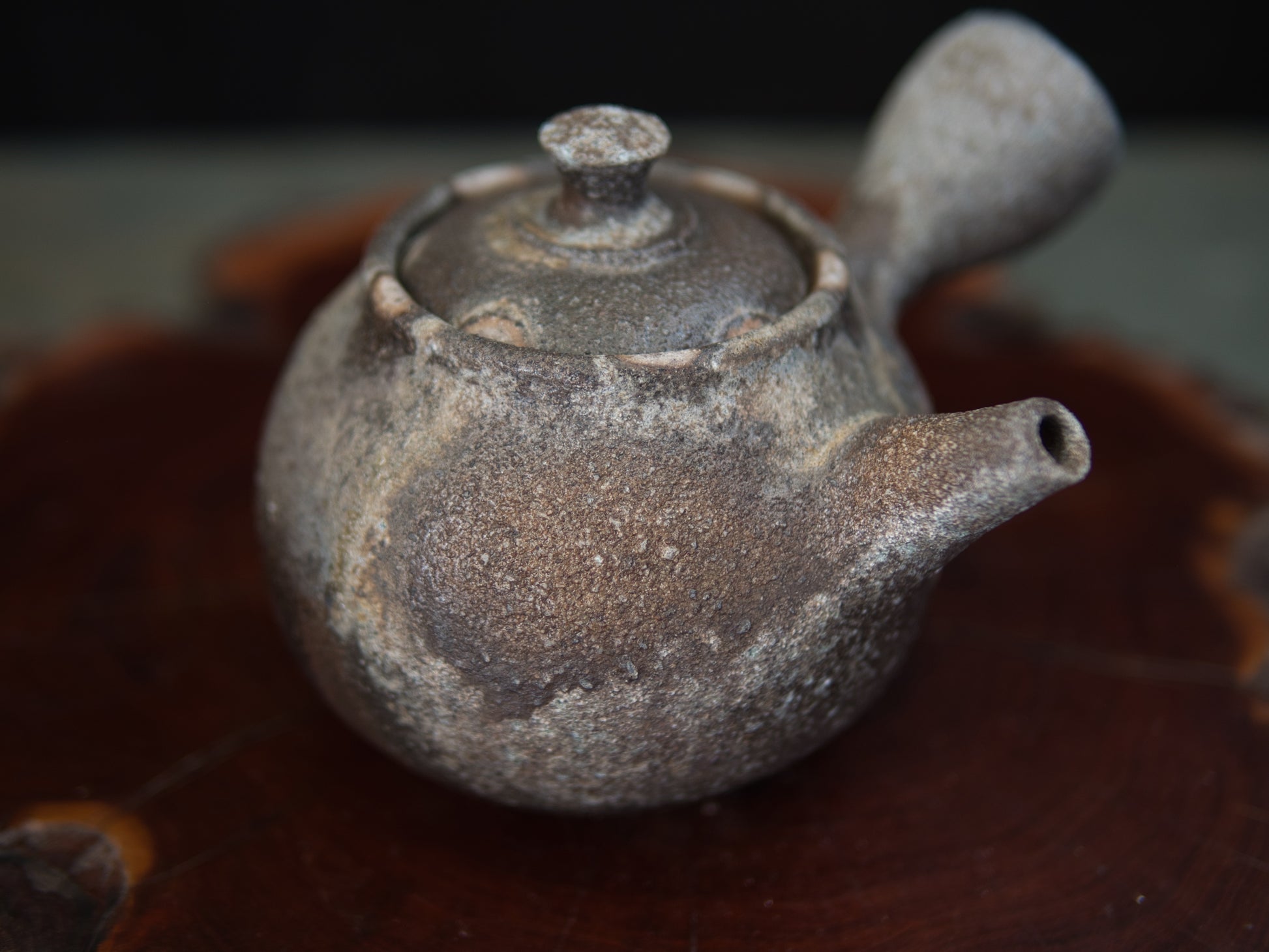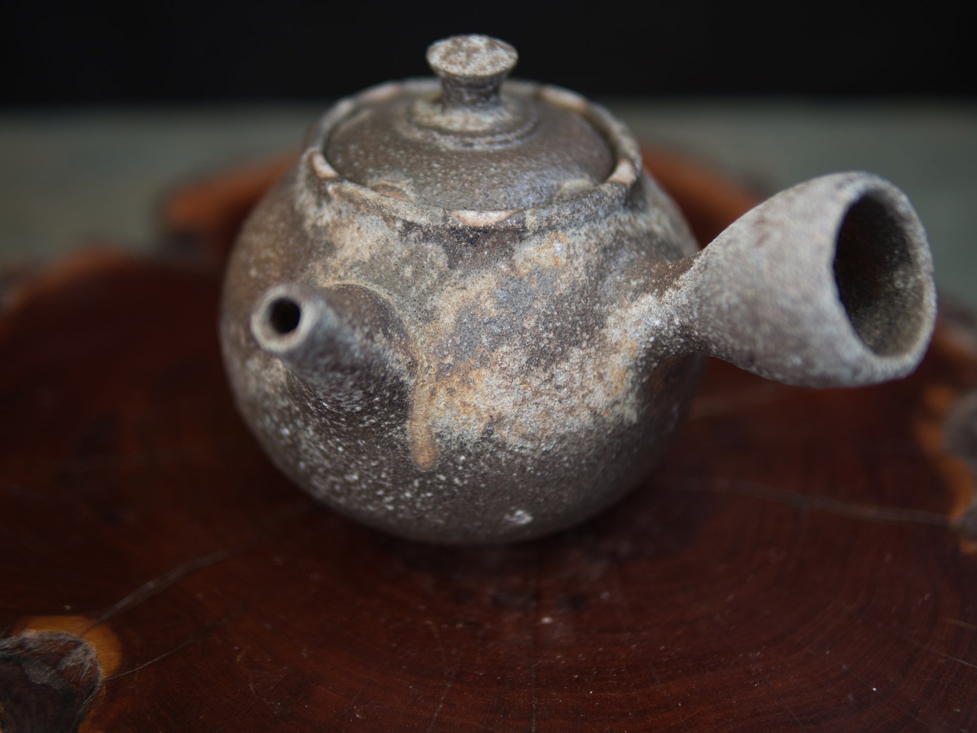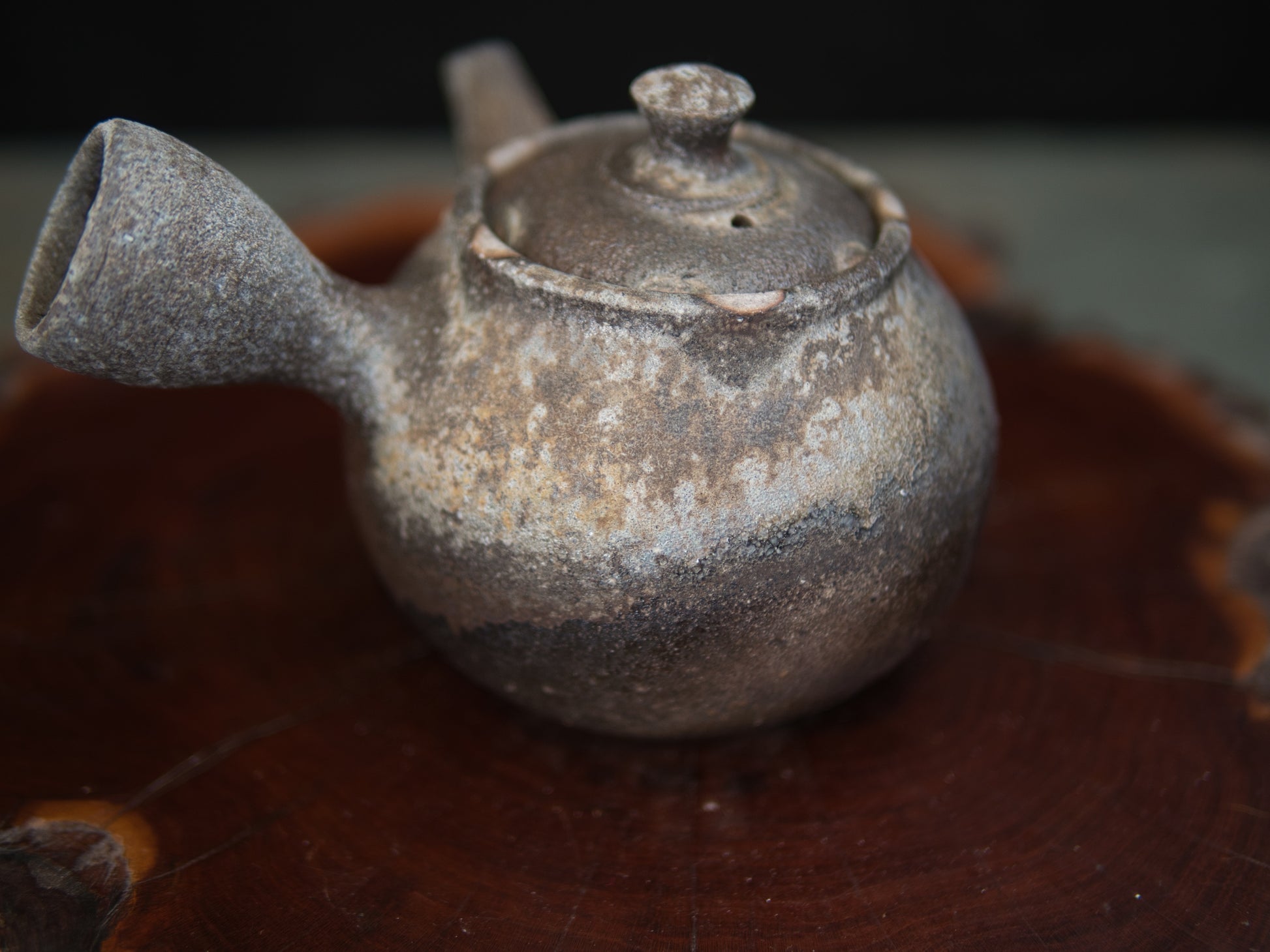 Diese Kanne ist eine klassische Seitengriffkanne, die man in Japan kyûsu nennt. Mit 280 ml ist diese Kanne vergleichsweise groß und wird von den Kondôs nur selten hergestellt. Die Größe ist ideal für Mehrfachaufgüsse aller Teesorten, die man zu zweit oder mit Gästen genießen möchte. Die Ascheanflugglasur fällt je nach Objekt und Platzierung einzigartig aus und macht aus jedem Stück ein Unikat. Diese Kanne ist ein Einzelstück und entspricht den Fotos.