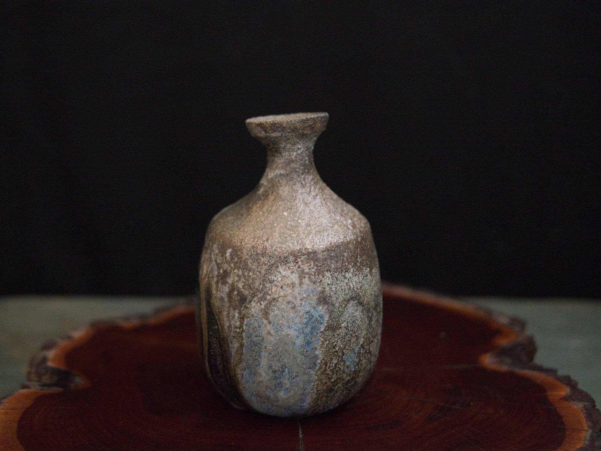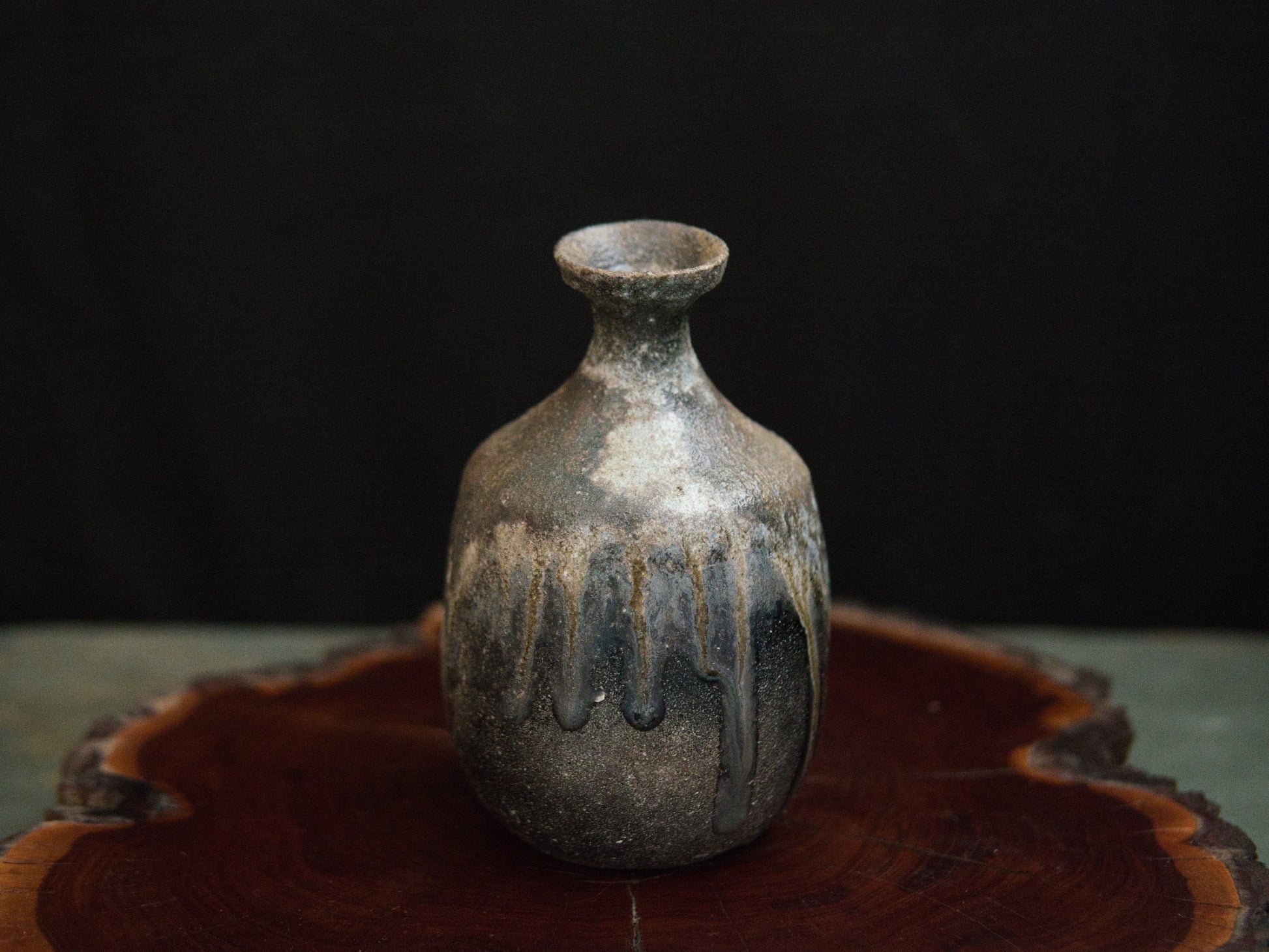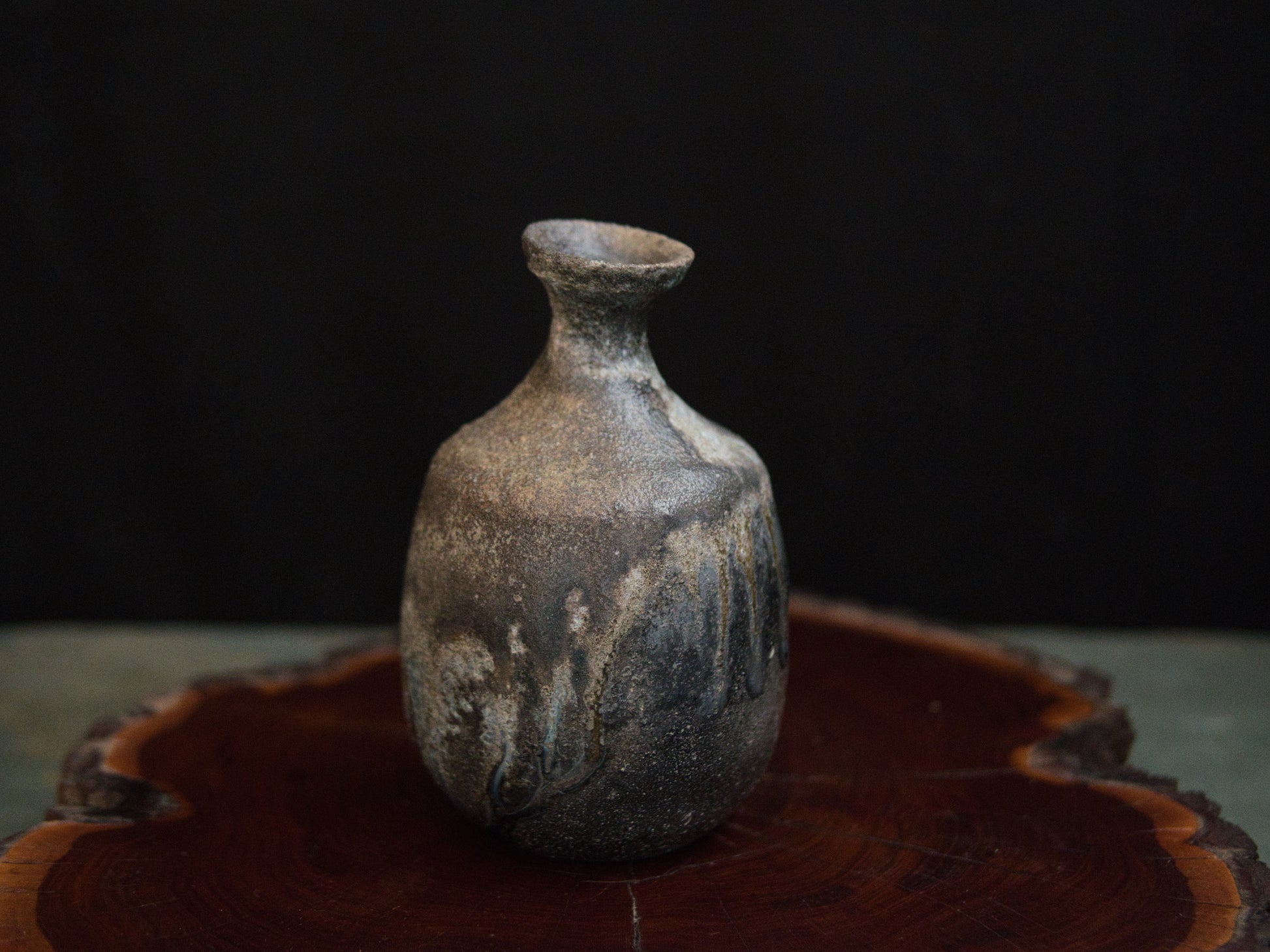 Die raue Oberfläche erzeugt eine rustikale Haptik, die Ascheanflugglasur hat ein natürliches und einzigartiges Dekor hinterlassen. Sakeflaschen werden in Japan tokkuri (徳利) genannt. Sie werden üblicherweise zum Servieren von japanischem Reiswein verwendet, der in Japan unter dem Namen nihonshu (日本酒) bekannt ist. Allerdings ist der Übergang zwischen Vasen und Sakeflaschen fließend, daher werden insbesondere Flaschen aus Holzbrand wie diese auch als Vasen verwendet. Wichtig ist nur, dass man sie nicht wechselseitig verwendet, da sich durch den Gebrauch als Vase Rückstände bilden können.
