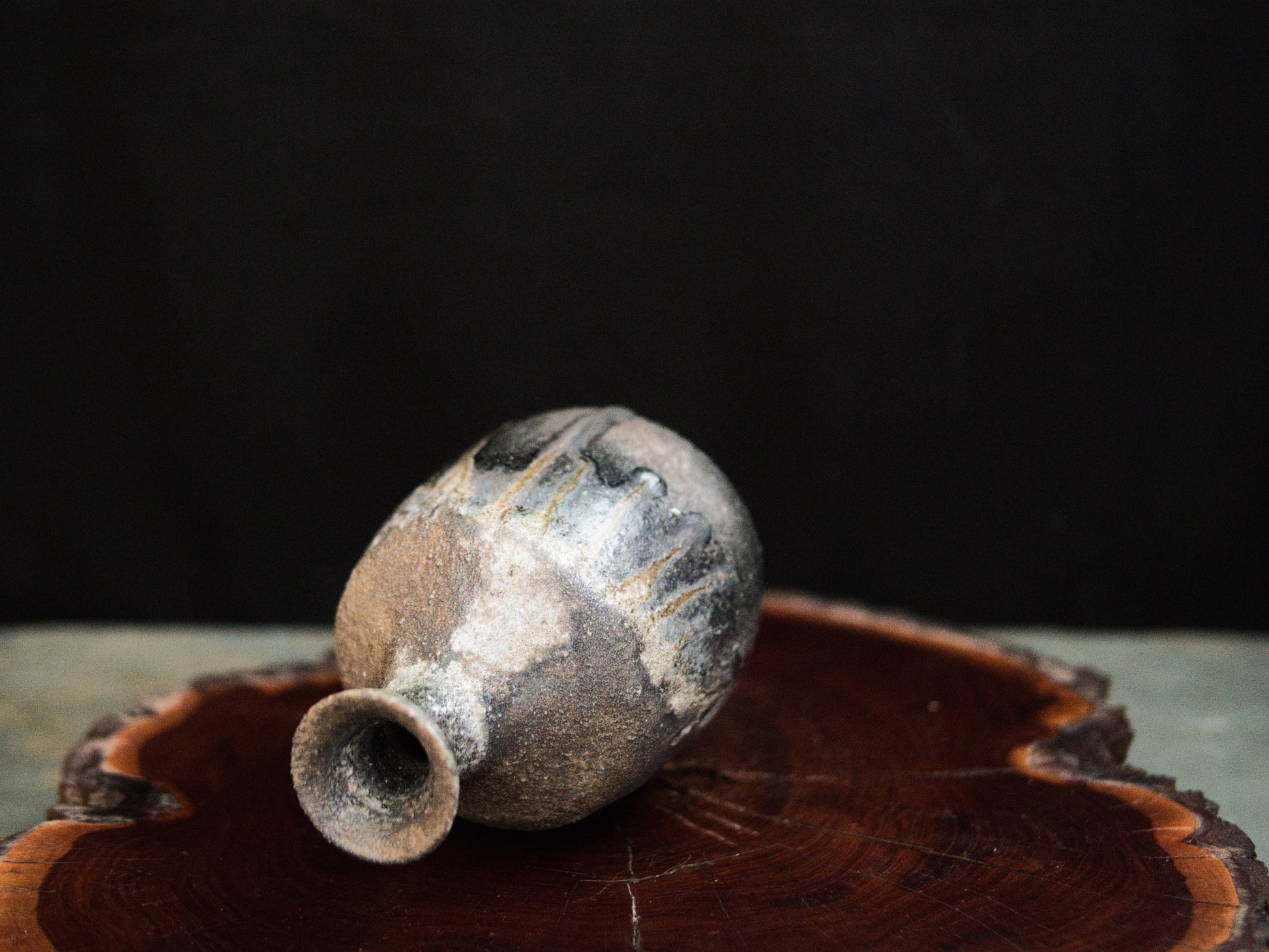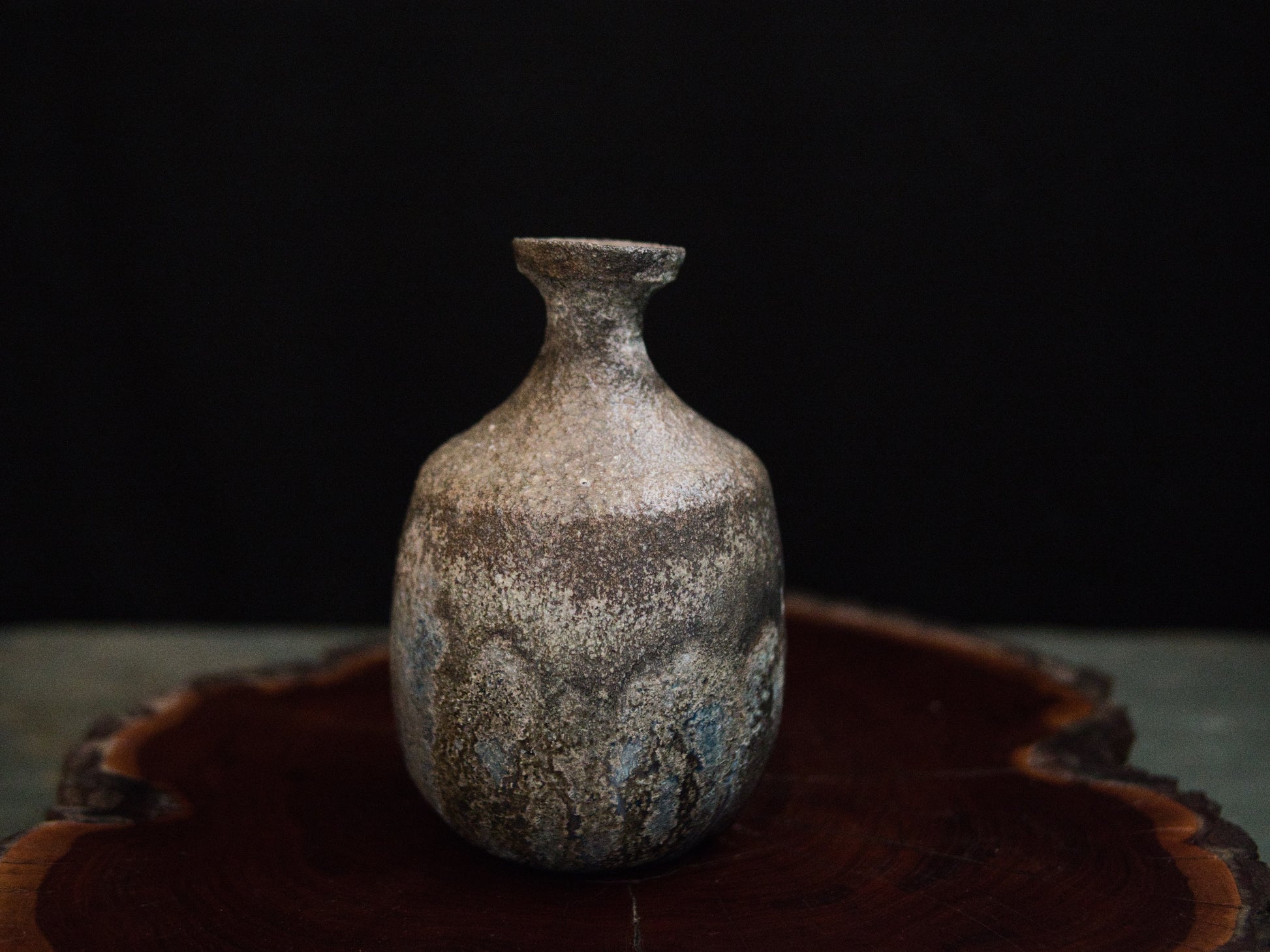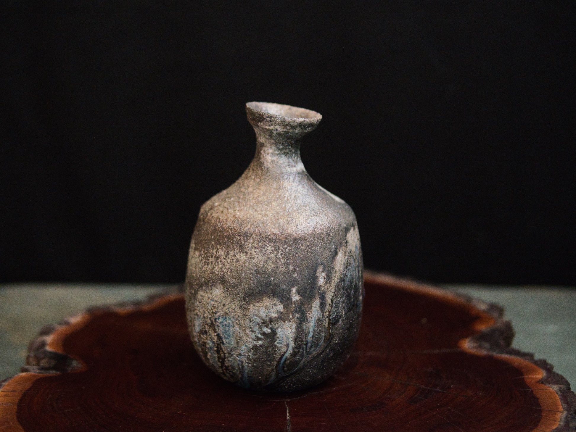 Die raue Oberfläche erzeugt eine rustikale Haptik, die Ascheanflugglasur hat ein natürliches und einzigartiges Dekor hinterlassen. Sakeflaschen werden in Japan tokkuri (徳利) genannt. Sie werden üblicherweise zum Servieren von japanischem Reiswein verwendet, der in Japan unter dem Namen nihonshu (日本酒) bekannt ist. Allerdings ist der Übergang zwischen Vasen und Sakeflaschen fließend, daher werden insbesondere Flaschen aus Holzbrand wie diese auch als Vasen verwendet. Wichtig ist nur, dass man sie nicht wechselseitig verwendet, da sich durch den Gebrauch als Vase Rückstände bilden können.