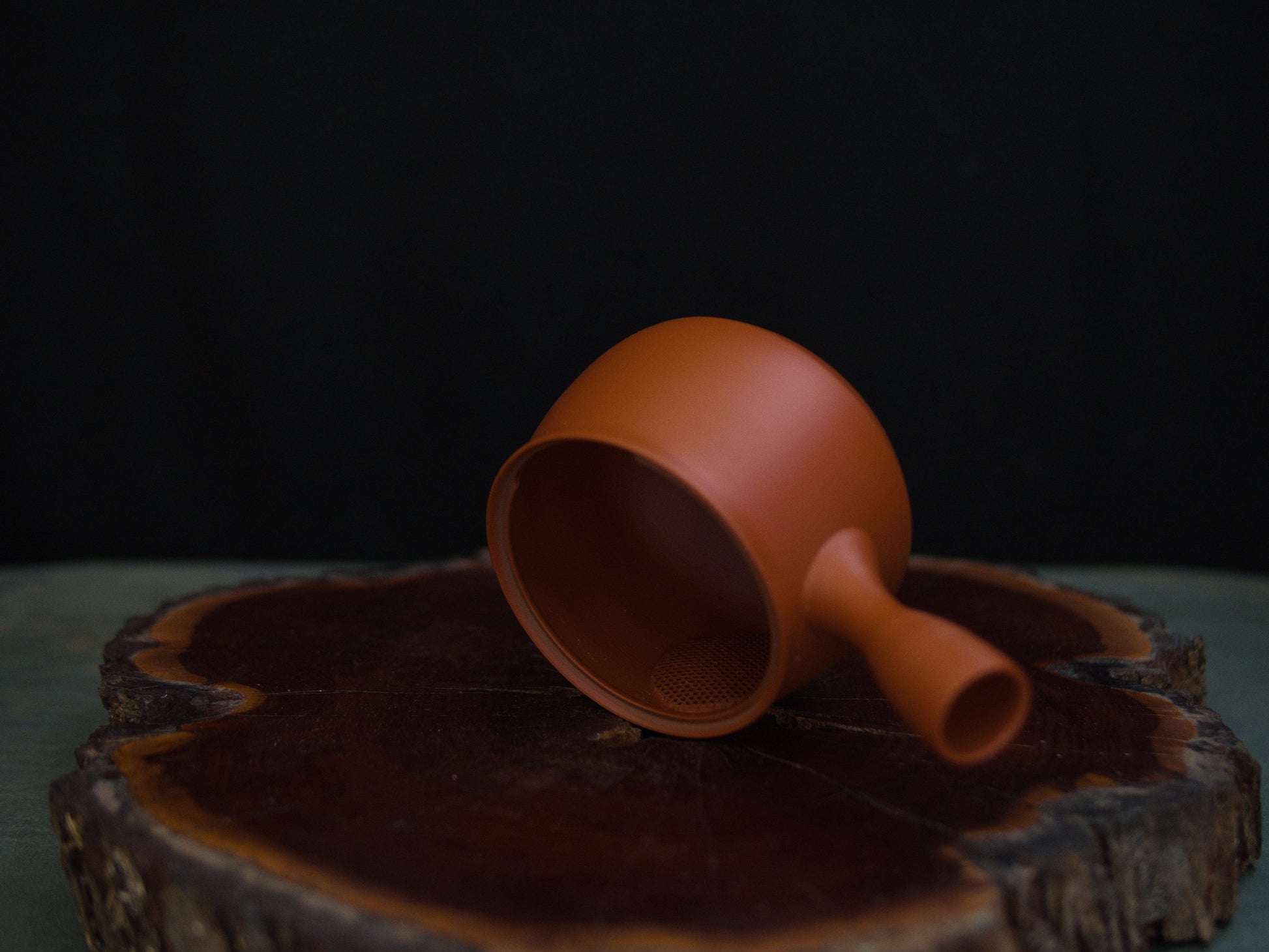 Heute: Seit über 25 Jahren in der Herstellung von Kyûsu tätig. Er verantwortet alle Arbeitsschritte selbst – von der Auswahl des Tons über das Drehen auf der Töpferscheibe bis hin zur Anfertigung des eigens entwickelten keramischen Feinfilters „Ceramesh“.
