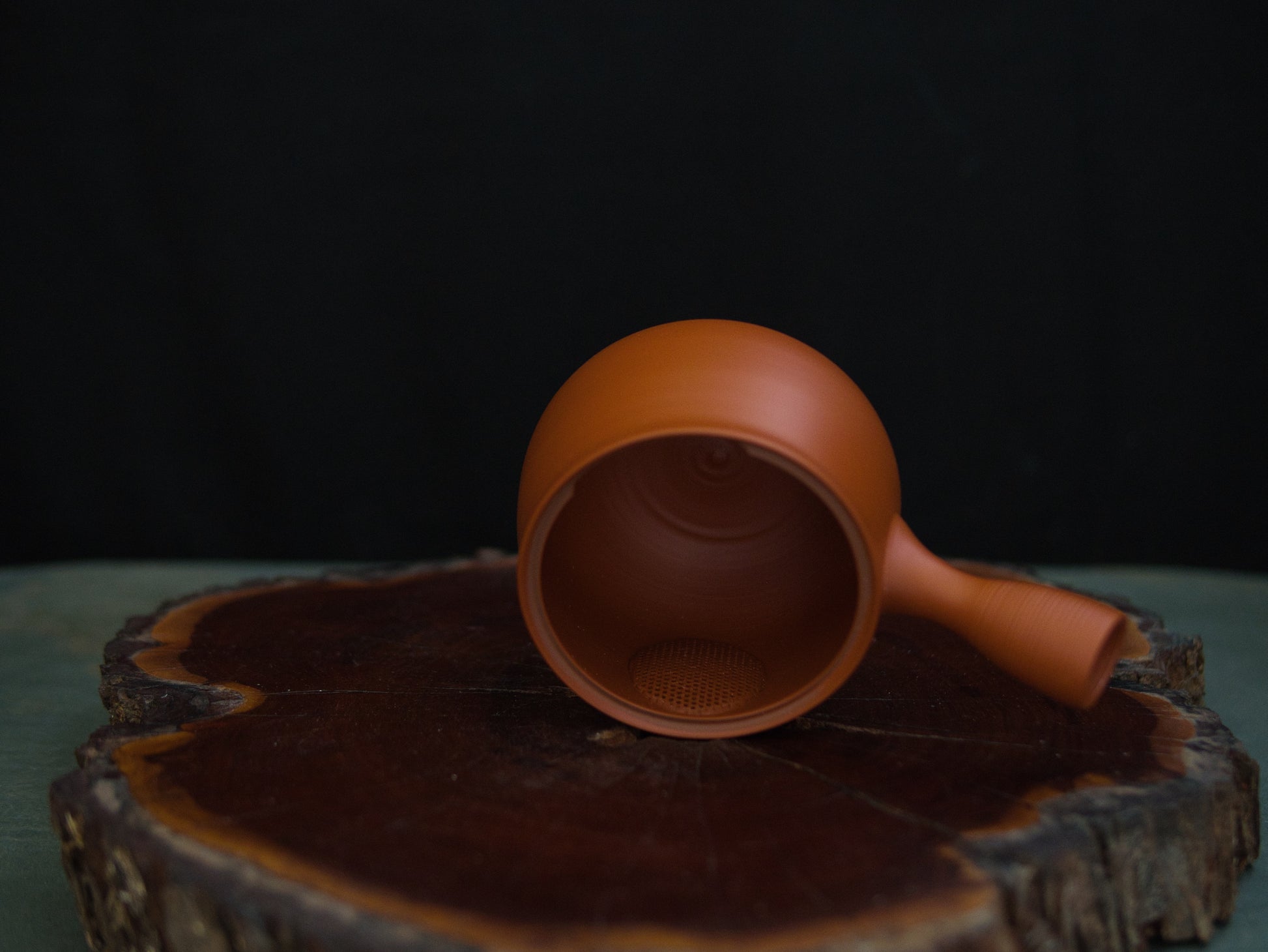 Im Inneren befindet sich ein fein gearbeiteter keramischer Filter. Diese Art des integrierten Tonsiebs bewahrt das Aroma unverfälscht und ist ideal für hochwertige japanische Grüntees wie Sencha oder Fukamushi. Kein Metall, kein Fremdgeschmack. Ein besonderes Merkmal ist der schwarz glasierte Griff des Deckels, der einen schönen Akzent setzt.