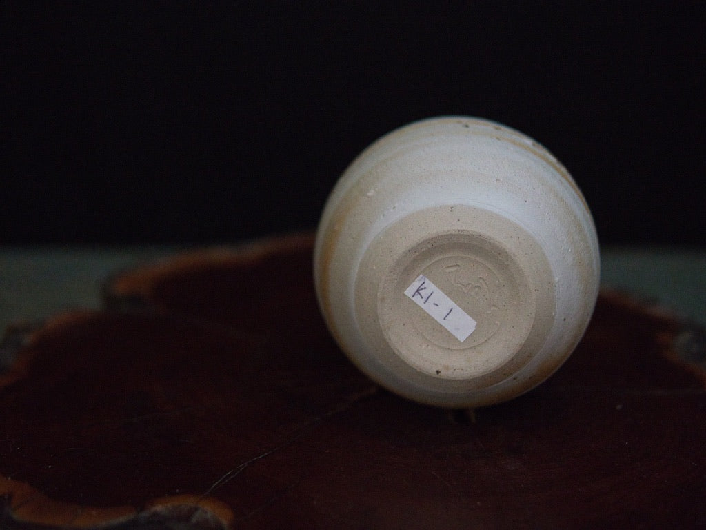 Bei diesem Becher erzeugen die weichen, horizontalen Bänder eine Oberfläche, die an die atmosphärische Streifung des Jupiters erinnert – organisch, ruhig und zugleich dynamisch. Die runde, leicht geschlossene Form liegt angenehm in der Hand, während die unglasierte Oberfläche die erdige Struktur des Tons spürbar macht. Ein charaktervolles Stück, das Ishida Kazuyas Gespür für Material, Rhythmus und subtile Texturen eindrucksvoll zeigt. Dieser Becher wird in einer handsignierten Holzschachtel (tomobako) geliefert.