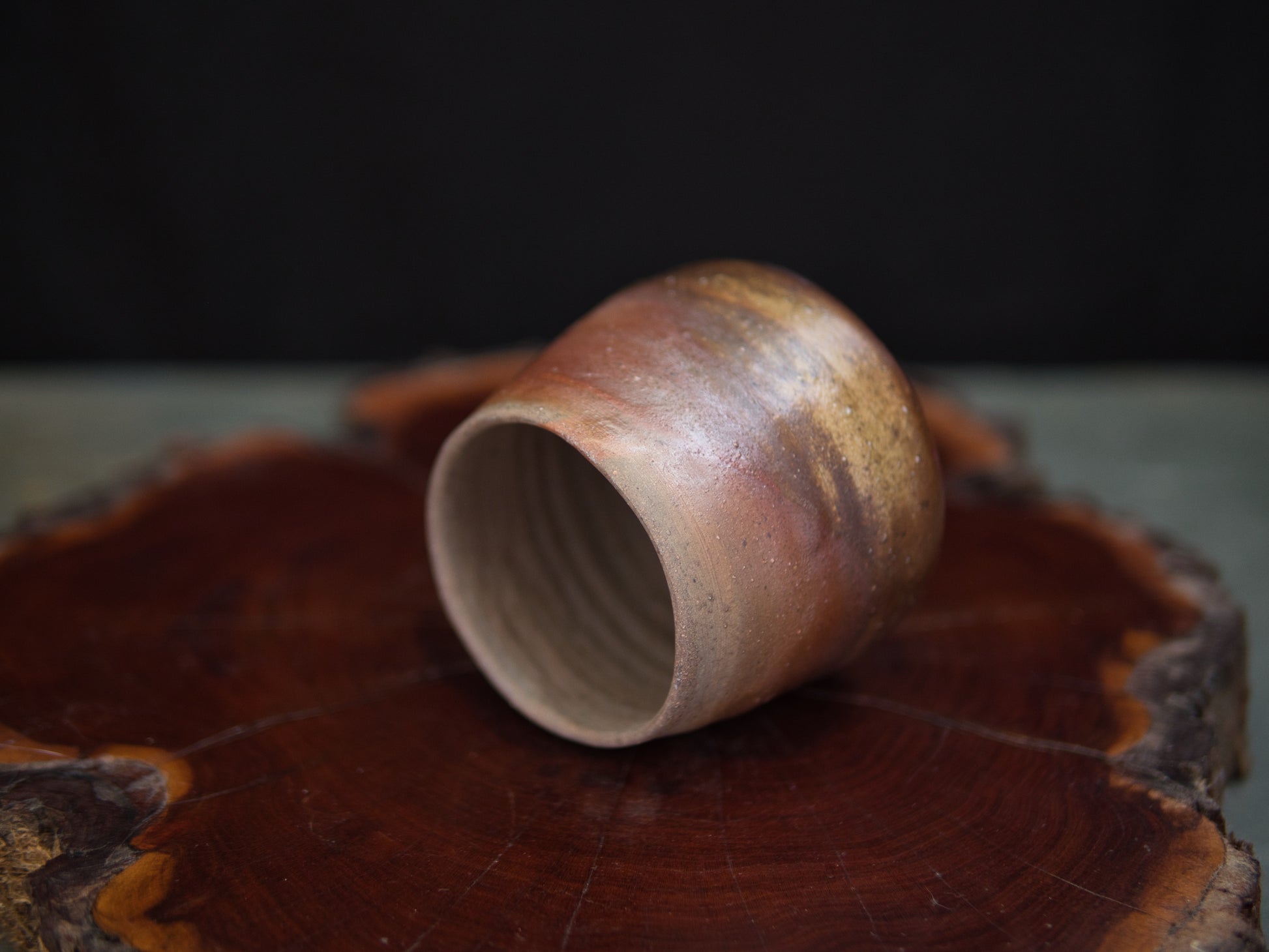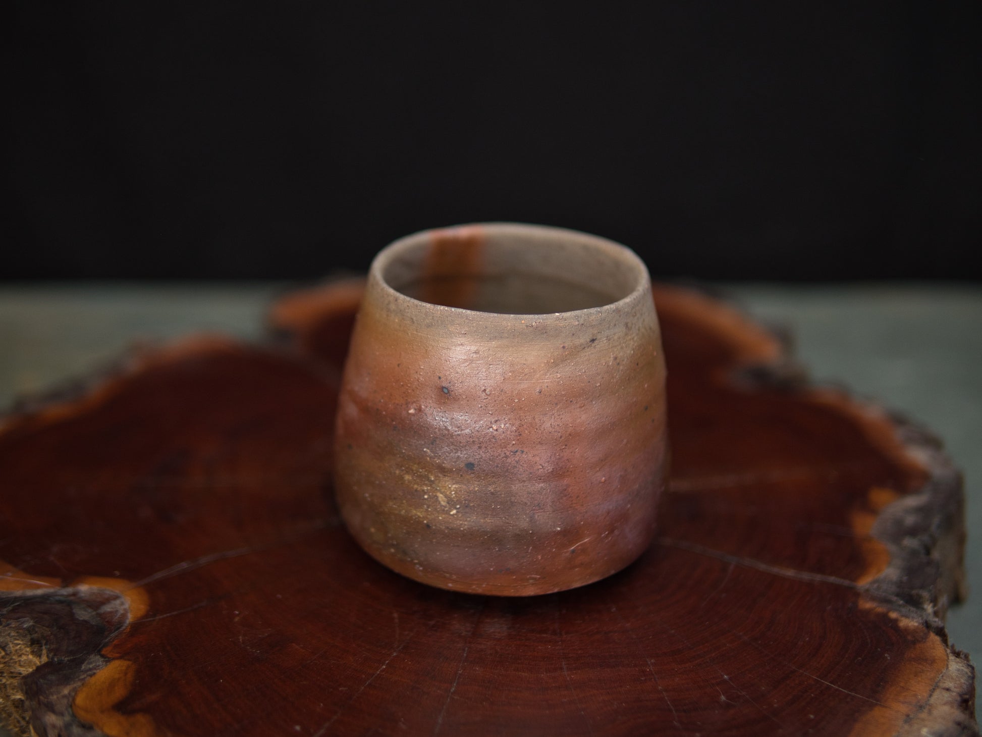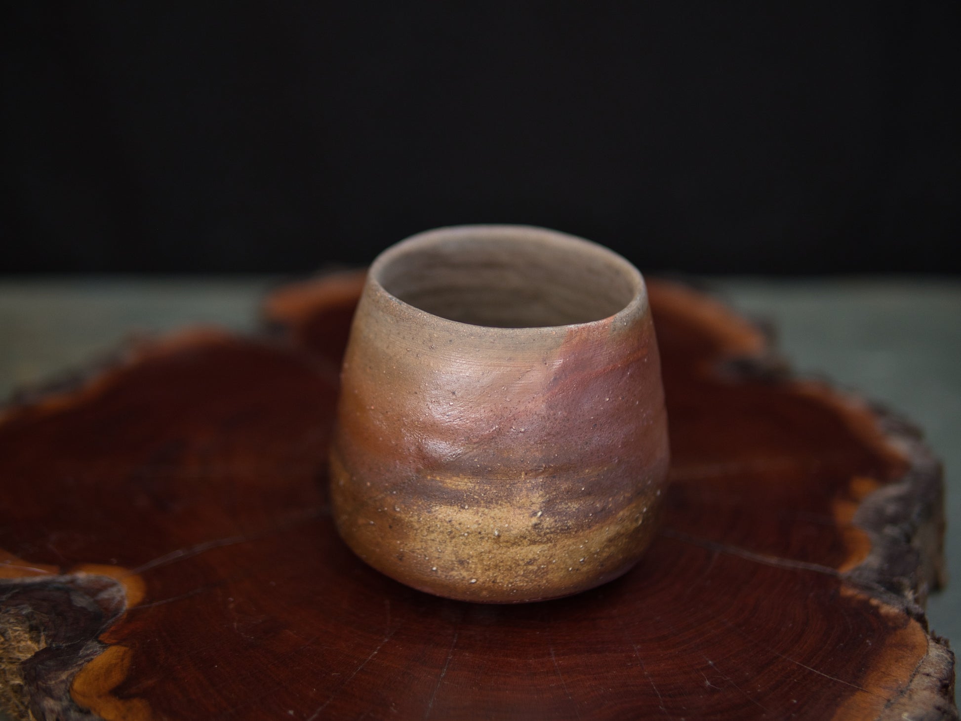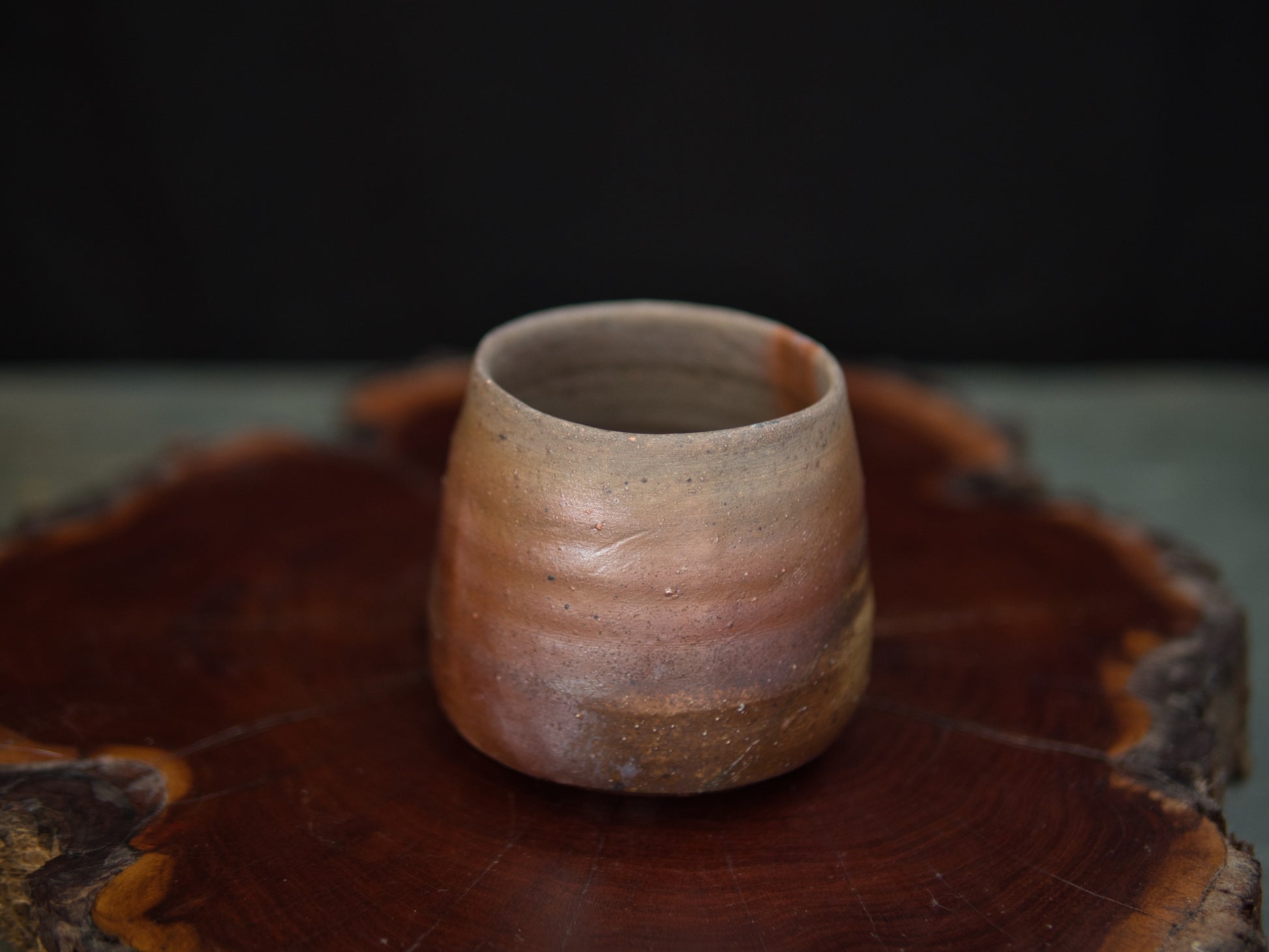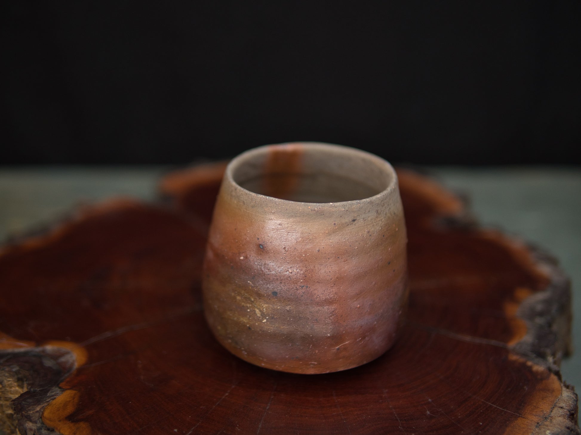 Dieser Becher von Shibaoka Yuta wurde im traditionellen Holzbrandverfahren gefertigt und zeigt die vielfältigen Farbnuancen des san-giri – von erdigen Brauntönen über sanfte Grau- und Violettschattierungen bis hin zu zarten Anflügen von Grün. Jede Partie erzählt vom Weg des Feuers und dem langen, langsamen Brennprozess, der für Bizen-Keramik typisch ist.