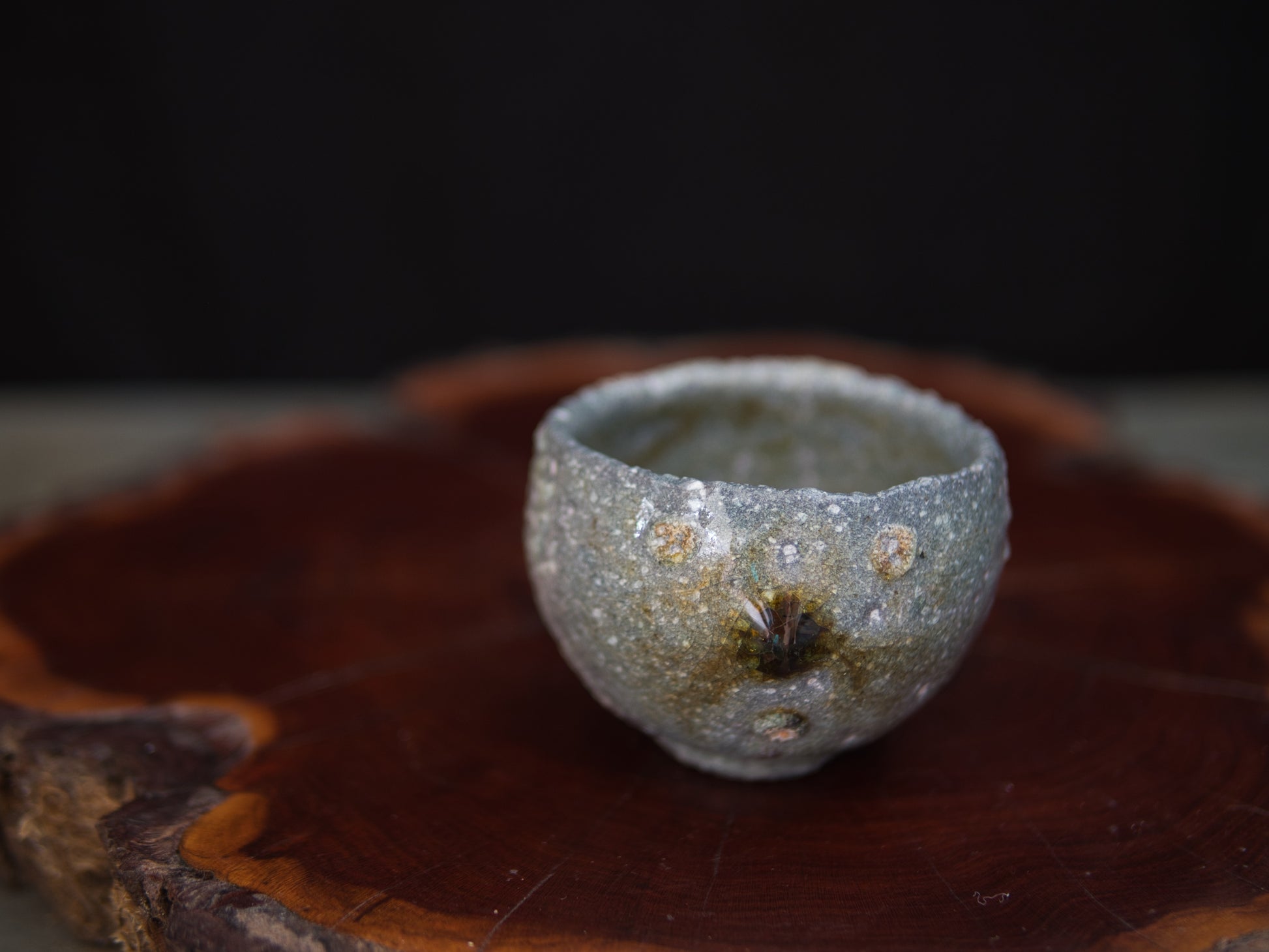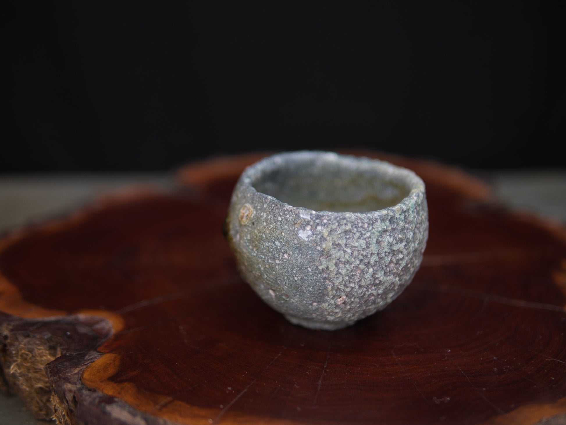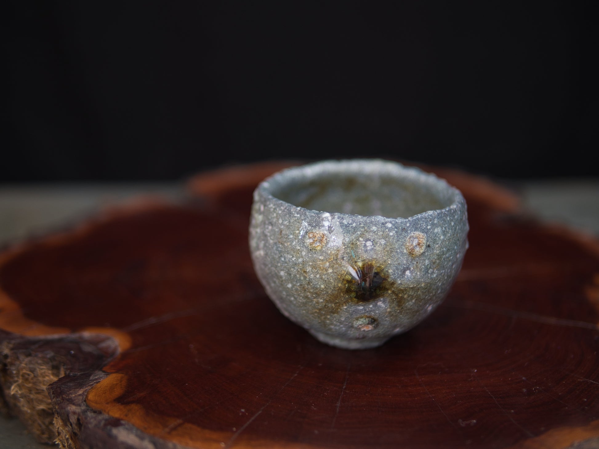 Im Holzbrand entstanden, zeigt der Guinomi eine lebendige Oberfläche aus verglasten Partien und ungeschmolzener Asche – ein Wechselspiel von Glanz und Rauheit, das sich wie eine kleine Landschaft entfaltet.
