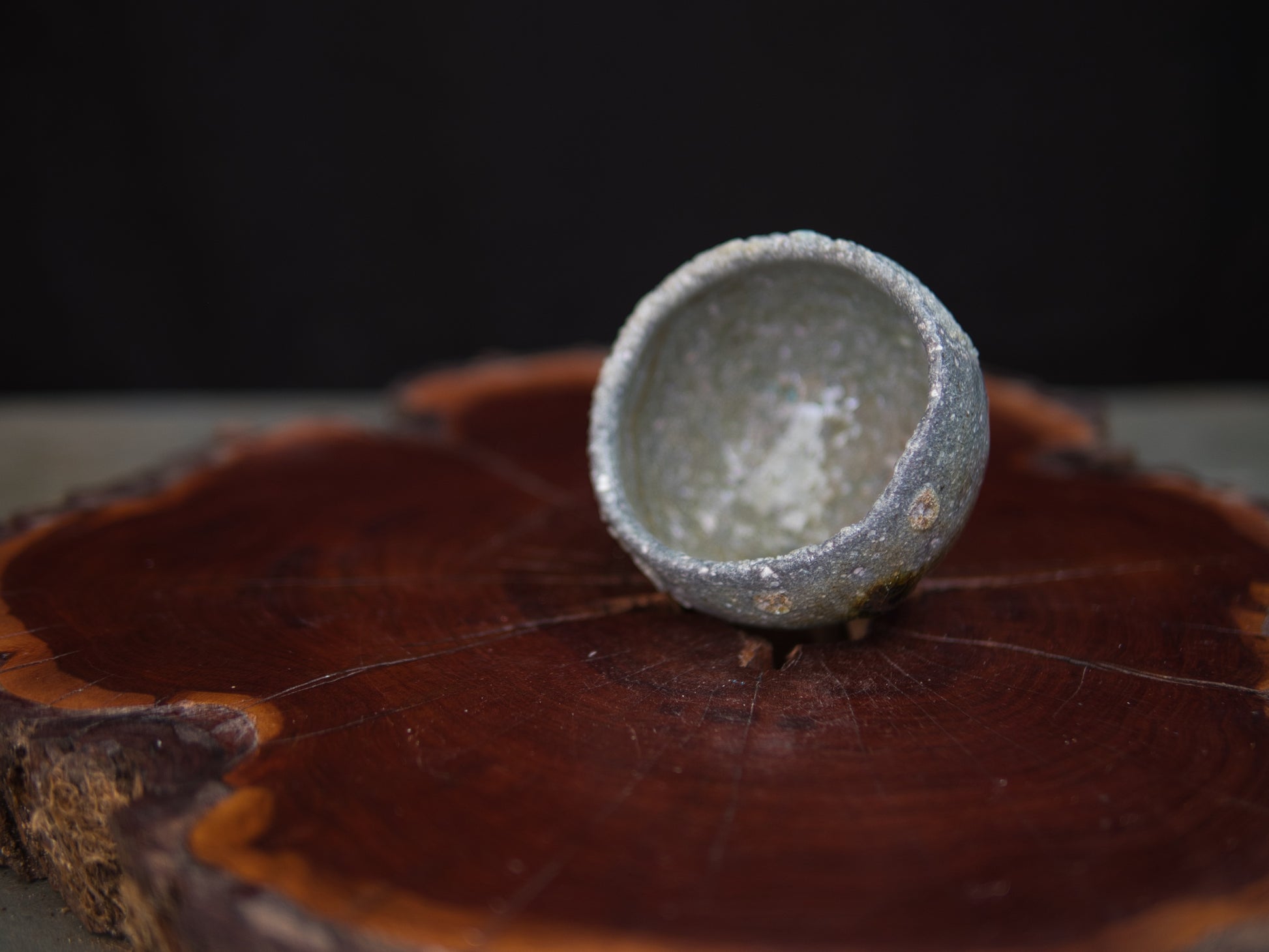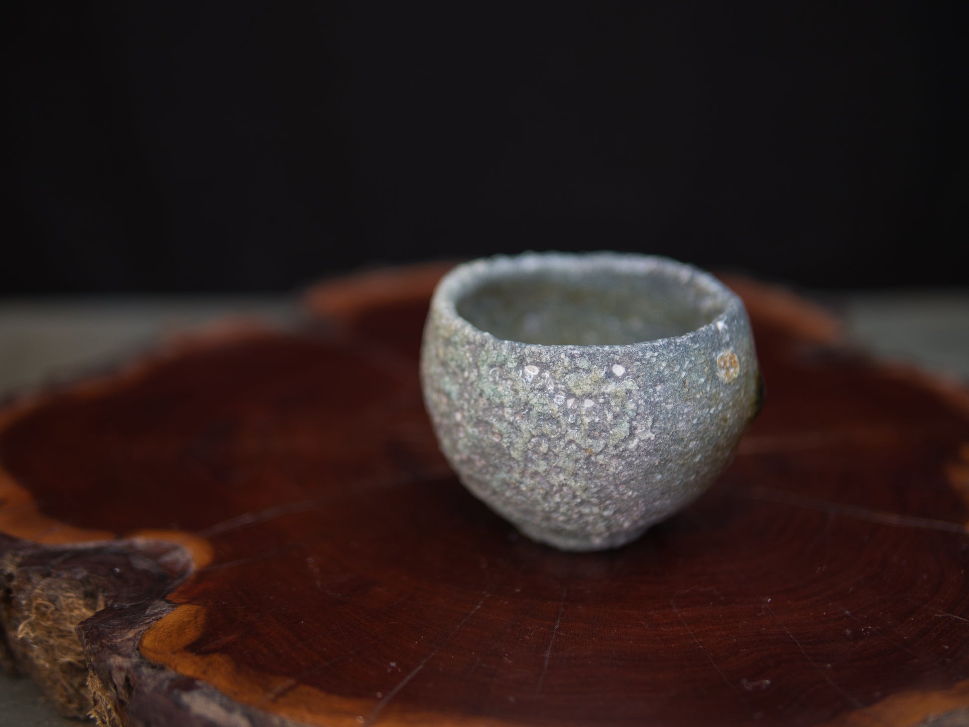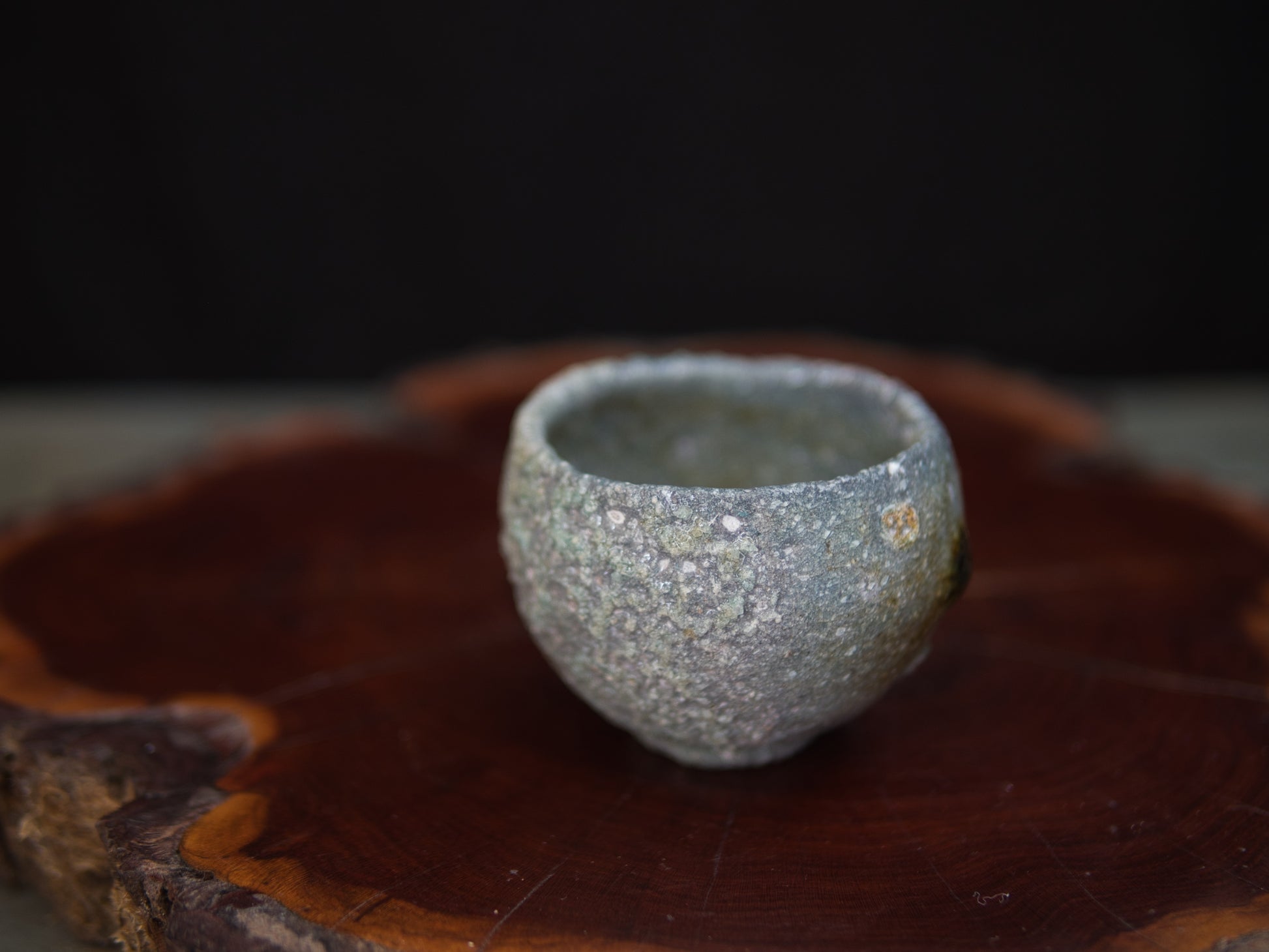 Im Holzbrand entstanden, zeigt der Guinomi eine lebendige Oberfläche aus verglasten Partien und ungeschmolzener Asche – ein Wechselspiel von Glanz und Rauheit, das sich wie eine kleine Landschaft entfaltet.