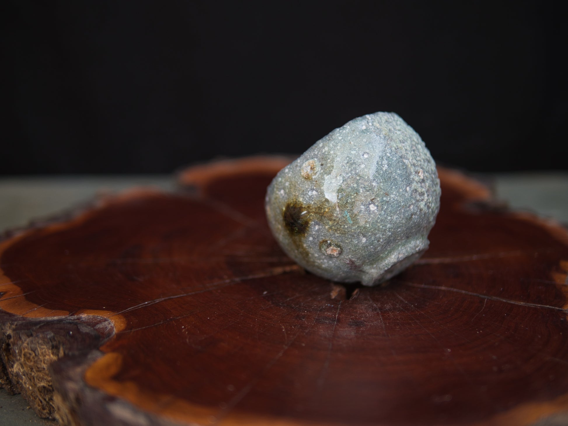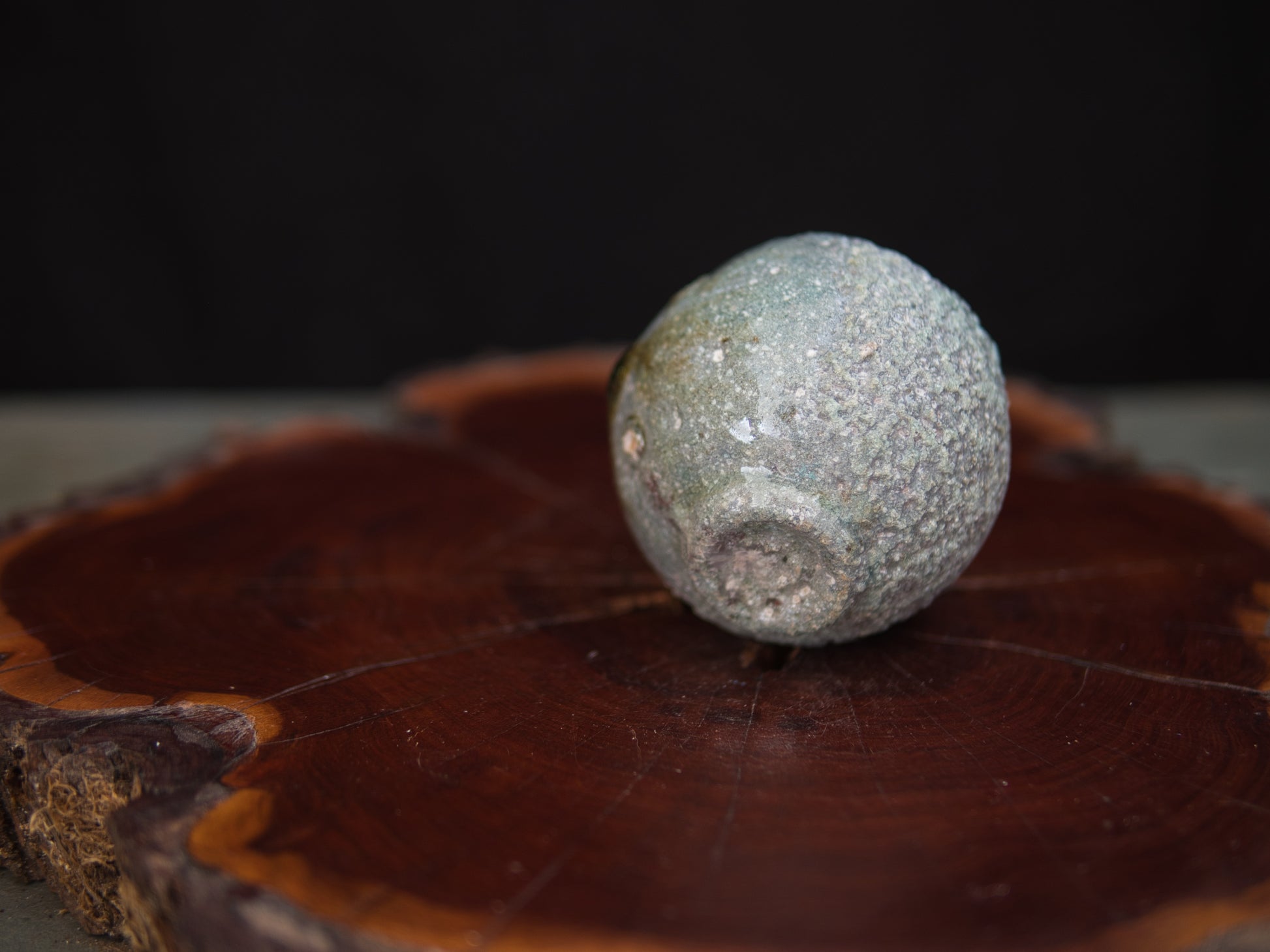 Die Form ist bewusst unregelmäßig und folgt keiner Symmetrie – ganz im Sinne des wabi-sabi, der Schönheit des Unvollkommenen. Ein Glasurtropfen aus verglaster Asche setzt einen stillen Akzent und verleiht dem Stück eine besondere Tiefe. Der rustikale Ton verstärkt den ursprünglichen Charakter und macht den Guinomi nicht nur optisch, sondern auch haptisch erlebbar.