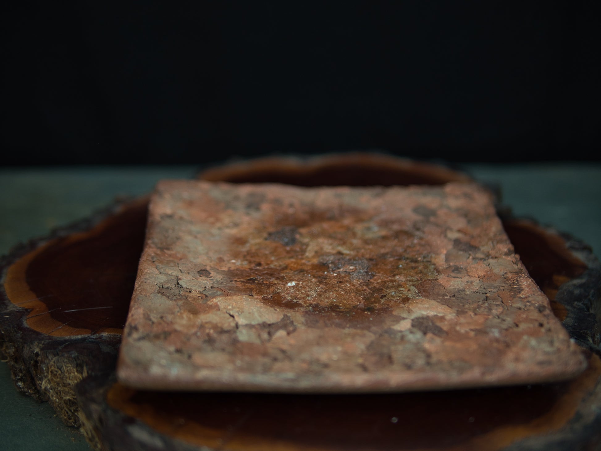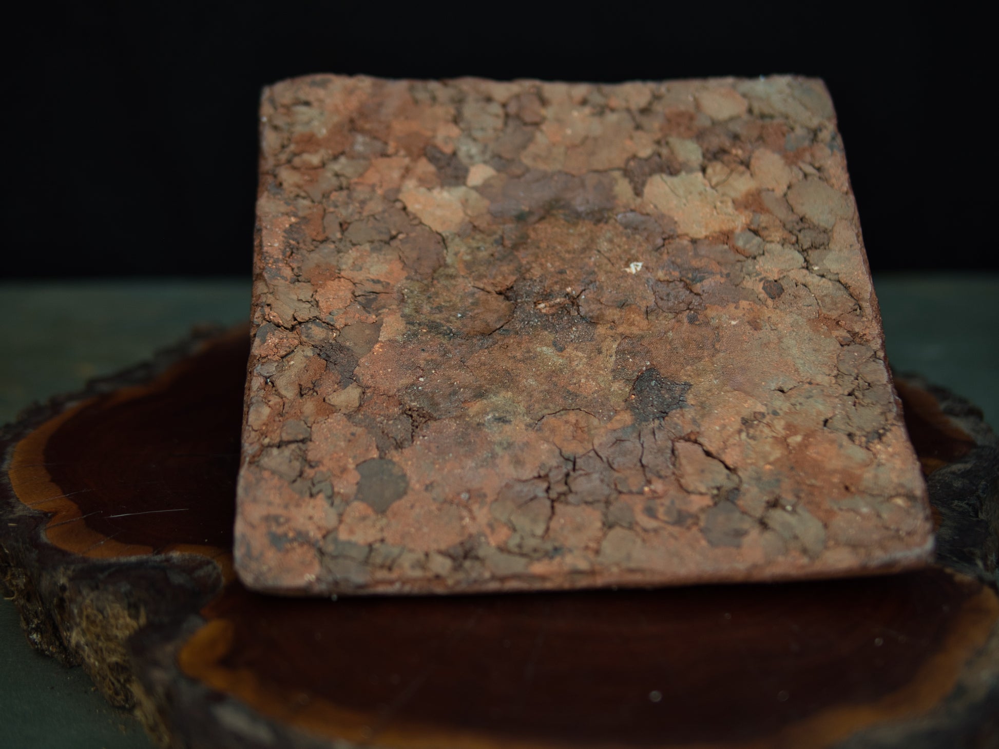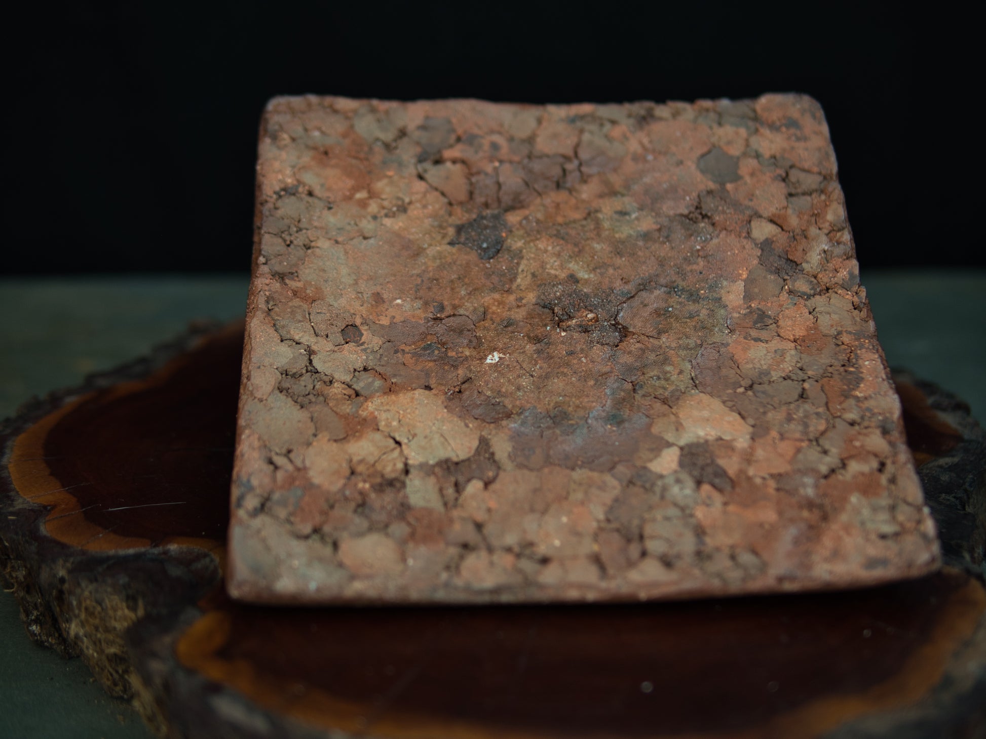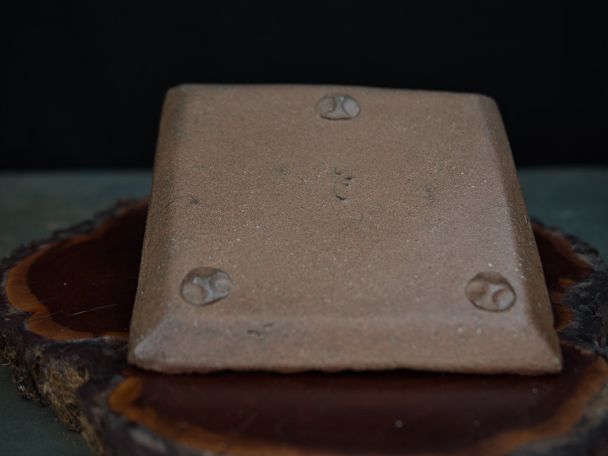 Die Farbpalette reicht von dunklen, erdigen Tönen bis zu warmen Rottönen – ein Ergebnis des langen Feuers und typisch für Bizen. Die unregelmäßige Struktur und die natürliche Unvollkommenheit folgen der Ästhetik des wabi-sabi und lassen das Stück wie von Zeit und Elementen geformt erscheinen.