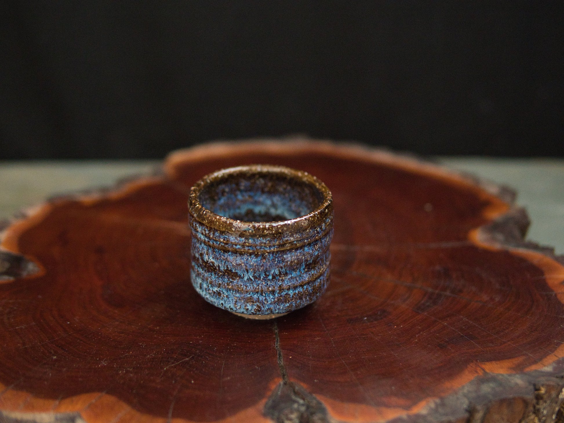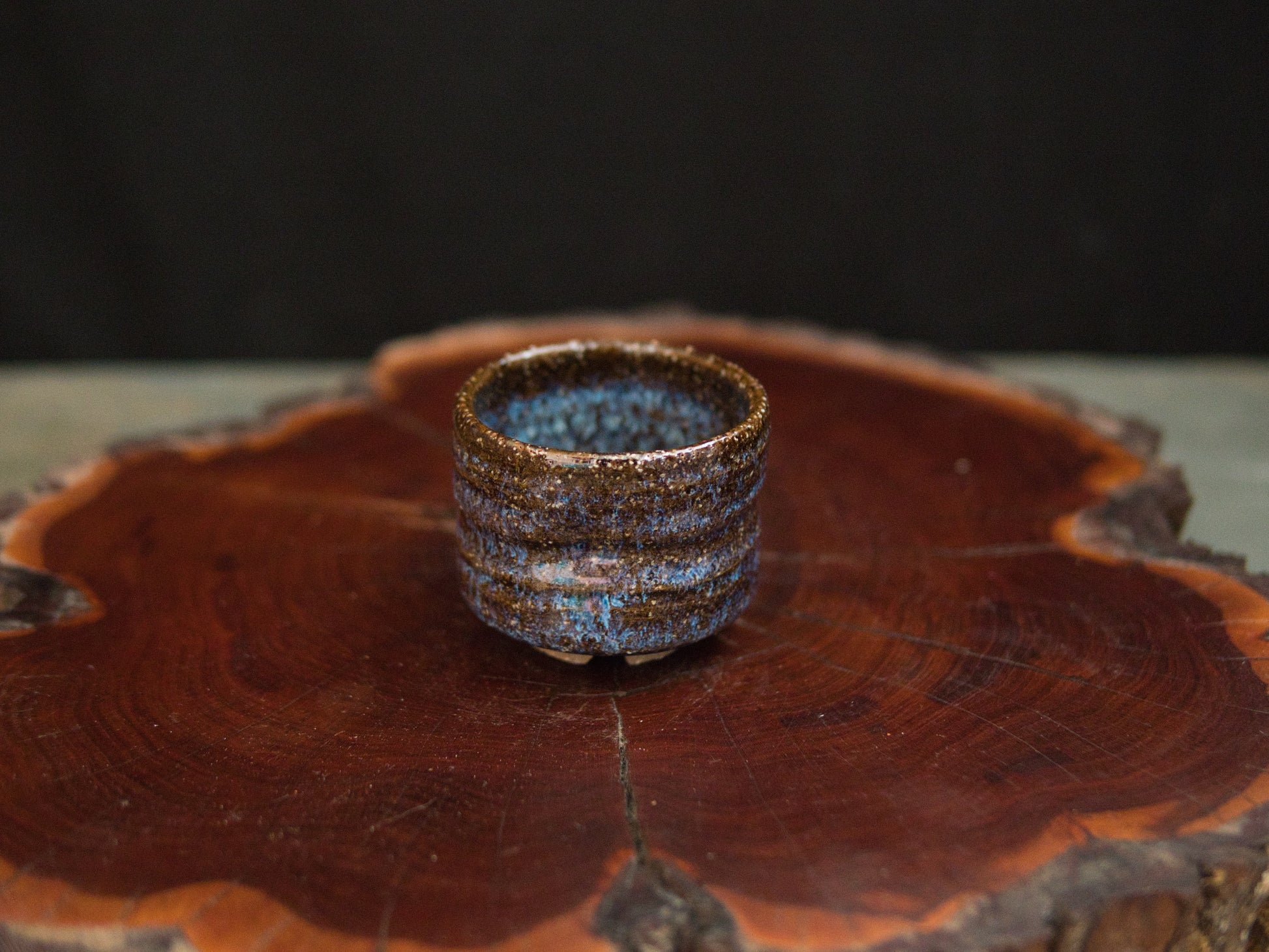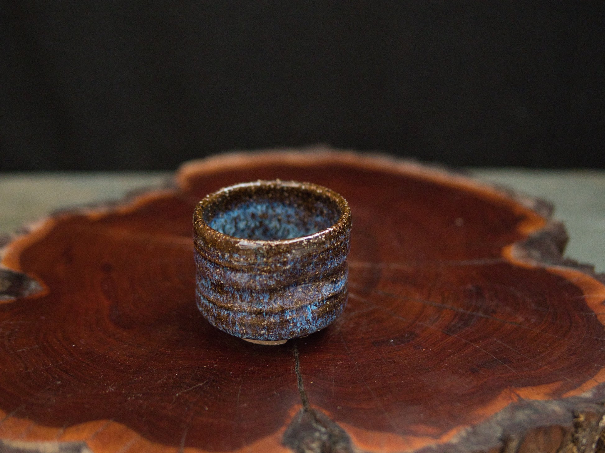 Der unglasierte Fuß lässt den Scherben bewusst sichtbar und verankert das Stück optisch wie haptisch. Insgesamt ist dieses Guinomi ein charaktervolles Gefäß für Sake oder Shochu, das durch seine Materialität und Tiefe ebenso Sammler wie Liebhaber stiller, ehrlicher Keramik anspricht.
