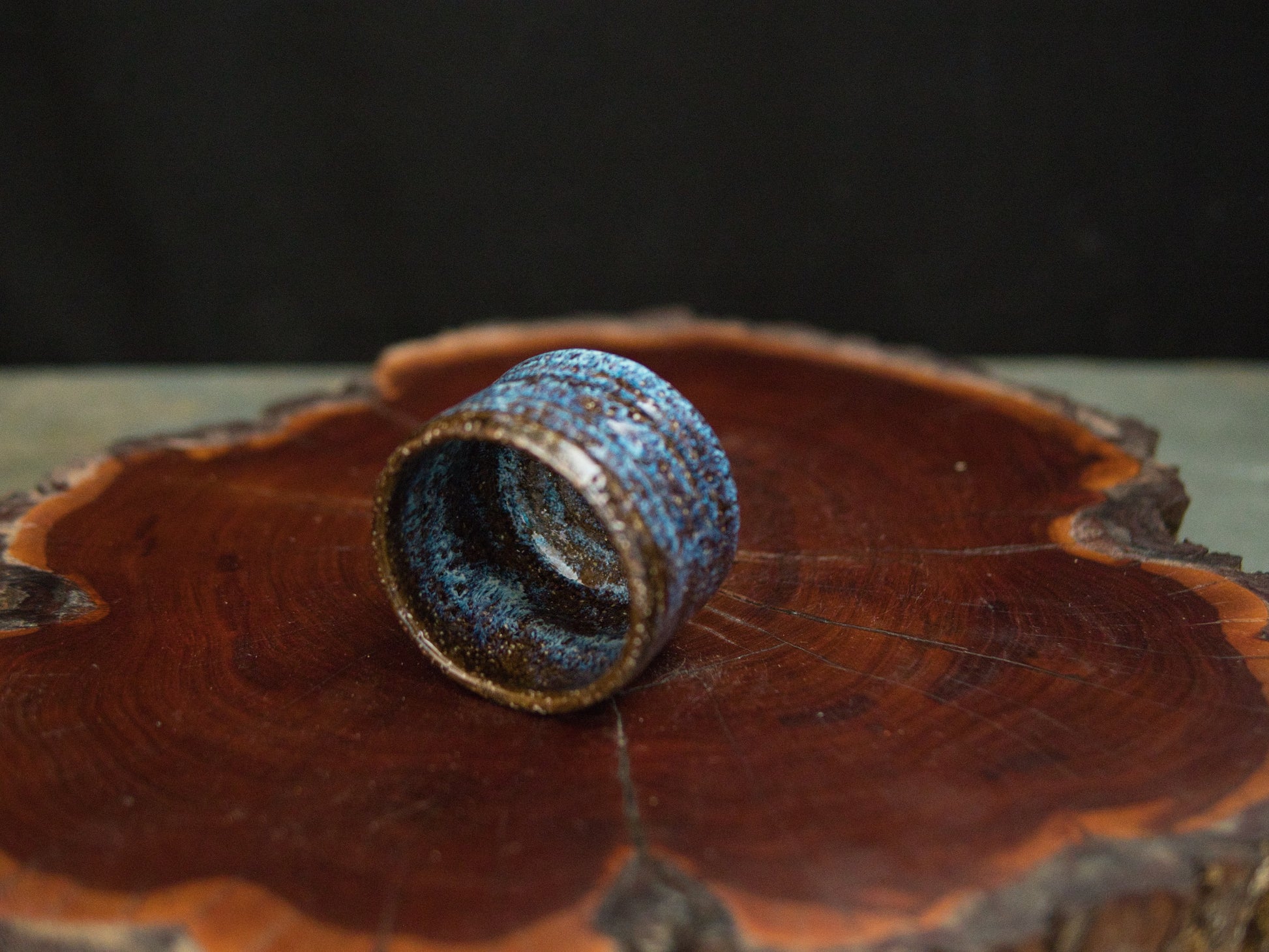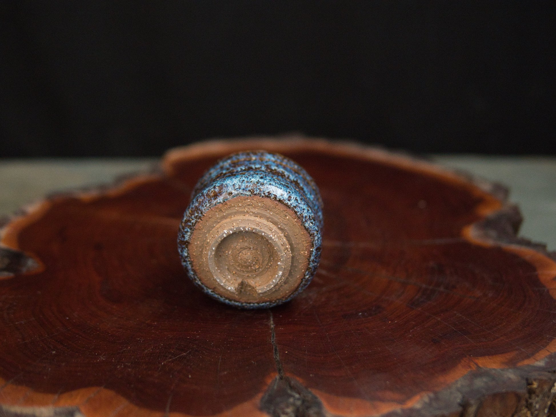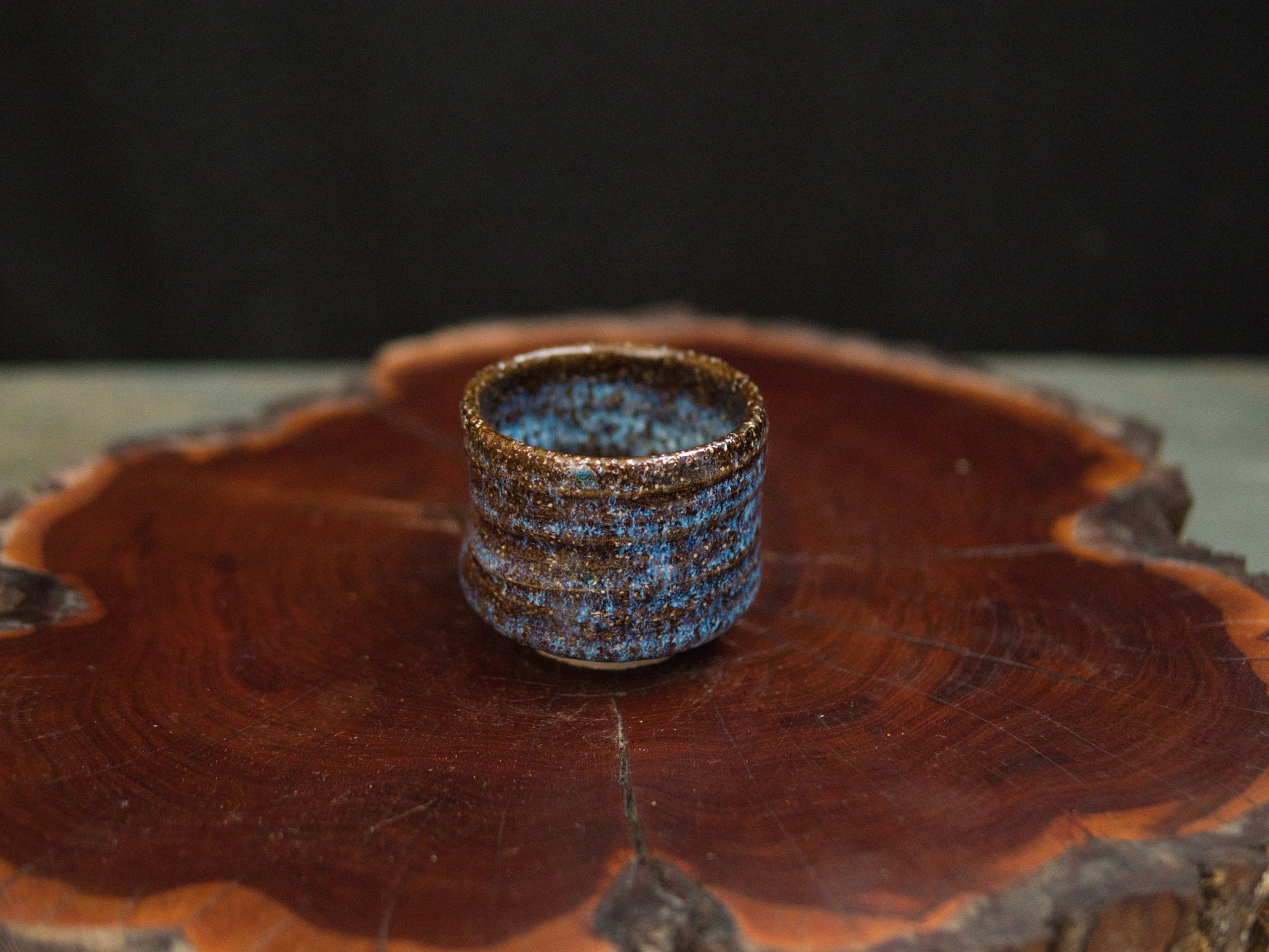 Der unglasierte Fuß lässt den Scherben bewusst sichtbar und verankert das Stück optisch wie haptisch. Insgesamt ist dieses Guinomi ein charaktervolles Gefäß für Sake oder Shochu, das durch seine Materialität und Tiefe ebenso Sammler wie Liebhaber stiller, ehrlicher Keramik anspricht.