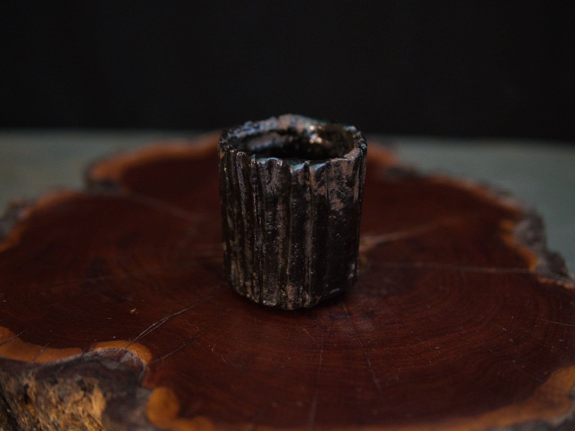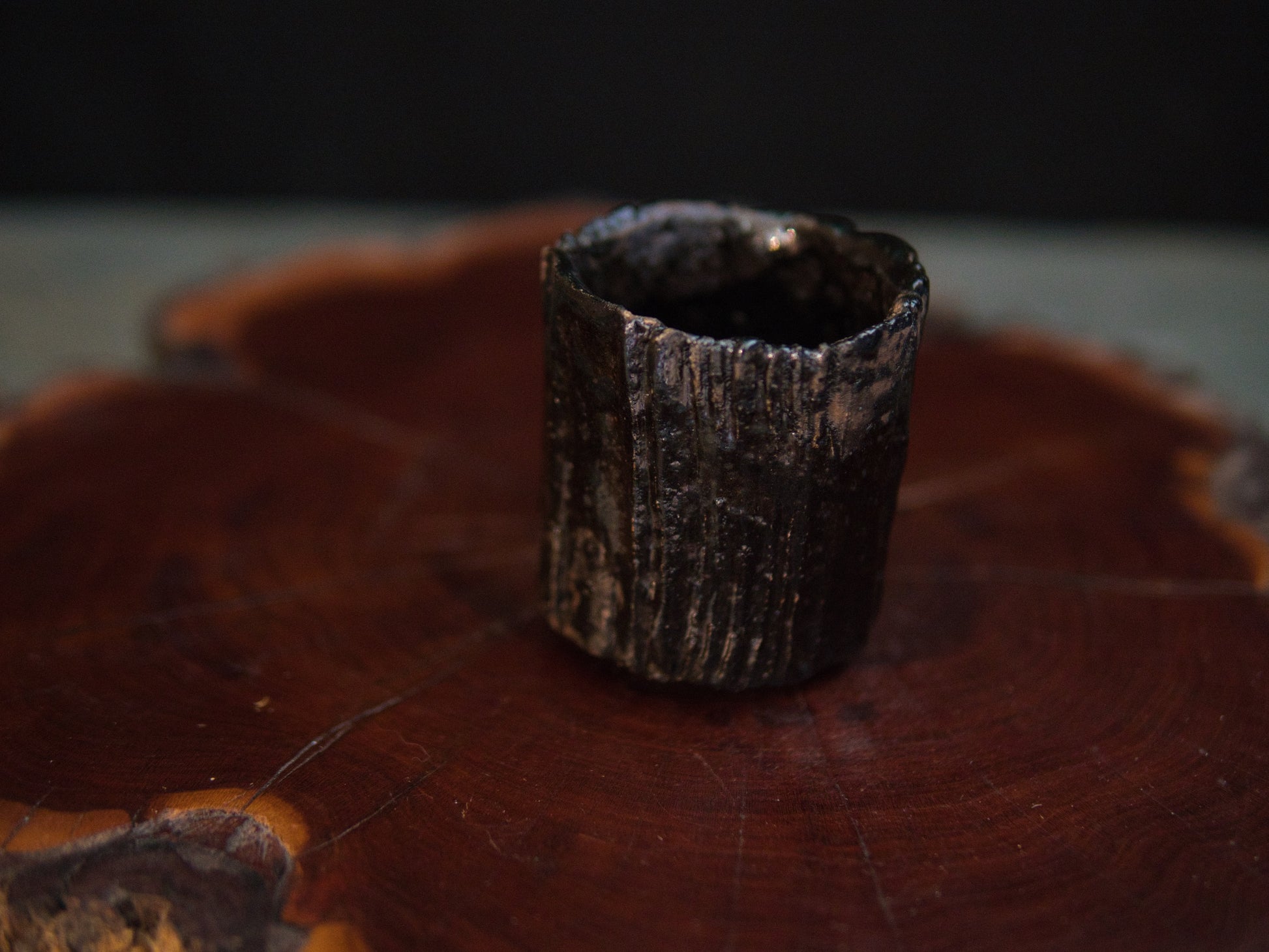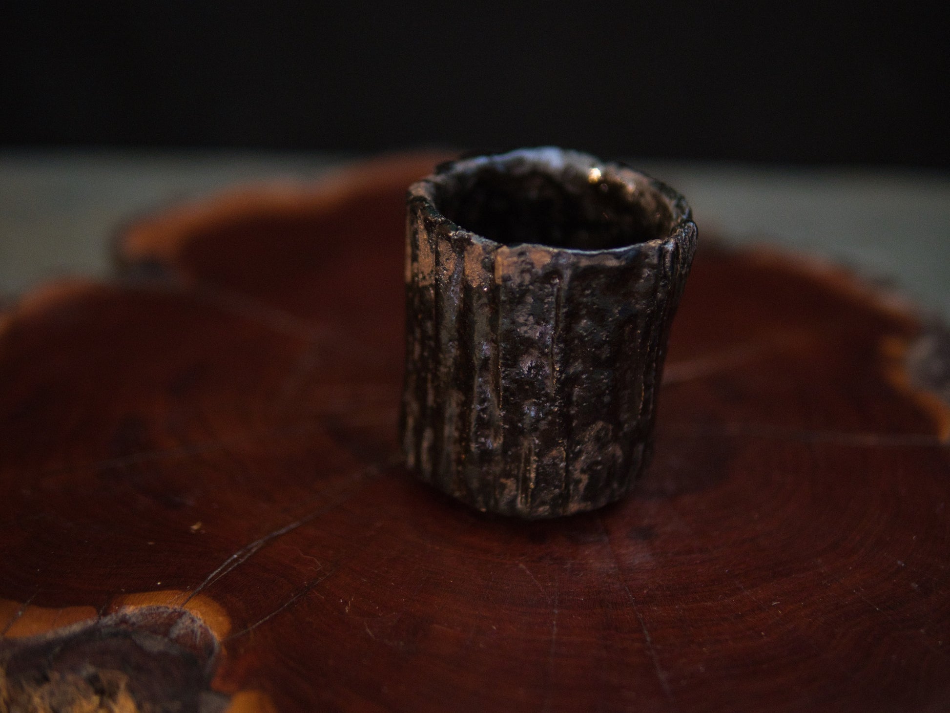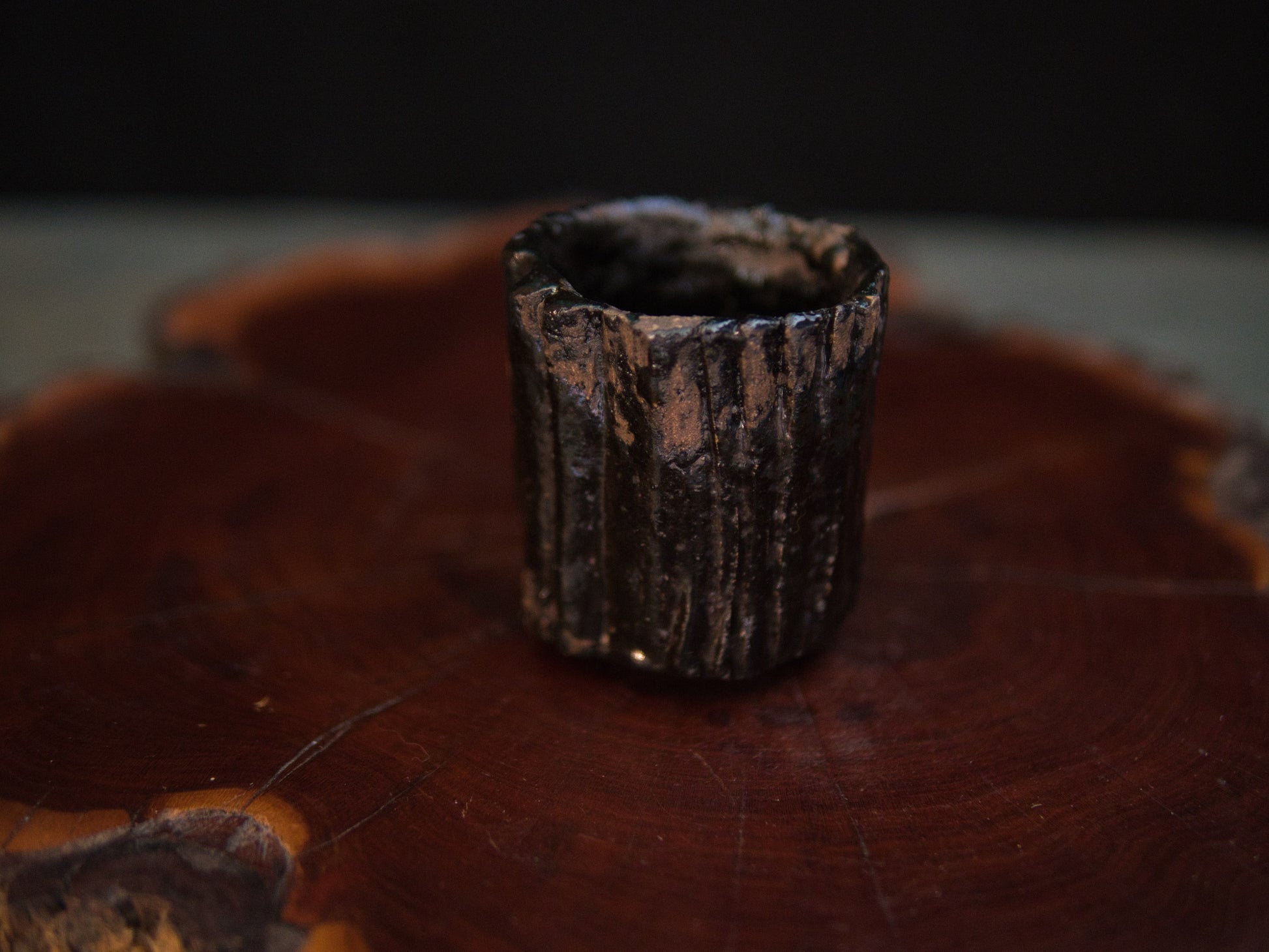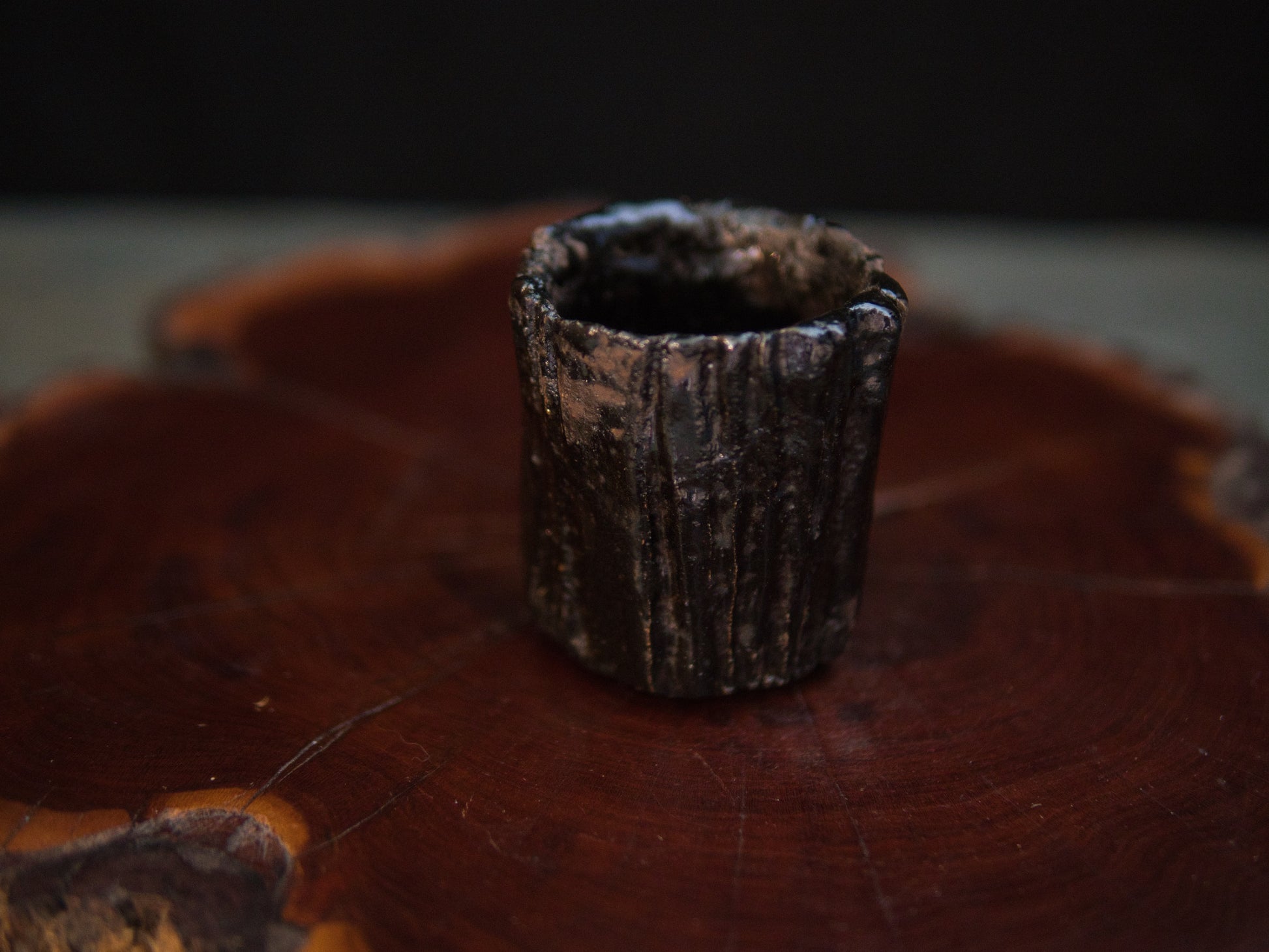 Aus dieser Idee entstand die Vorstellung von Erde, die sich im Stillen verwandelt, verdichtet und schließlich kristalline Formen annimmt. Die Oberfläche dieser Guinomi greift dieses Bild auf und verbindet die rohe Kraft des Tons mit einer stillen, fast meditativen Präsenz.