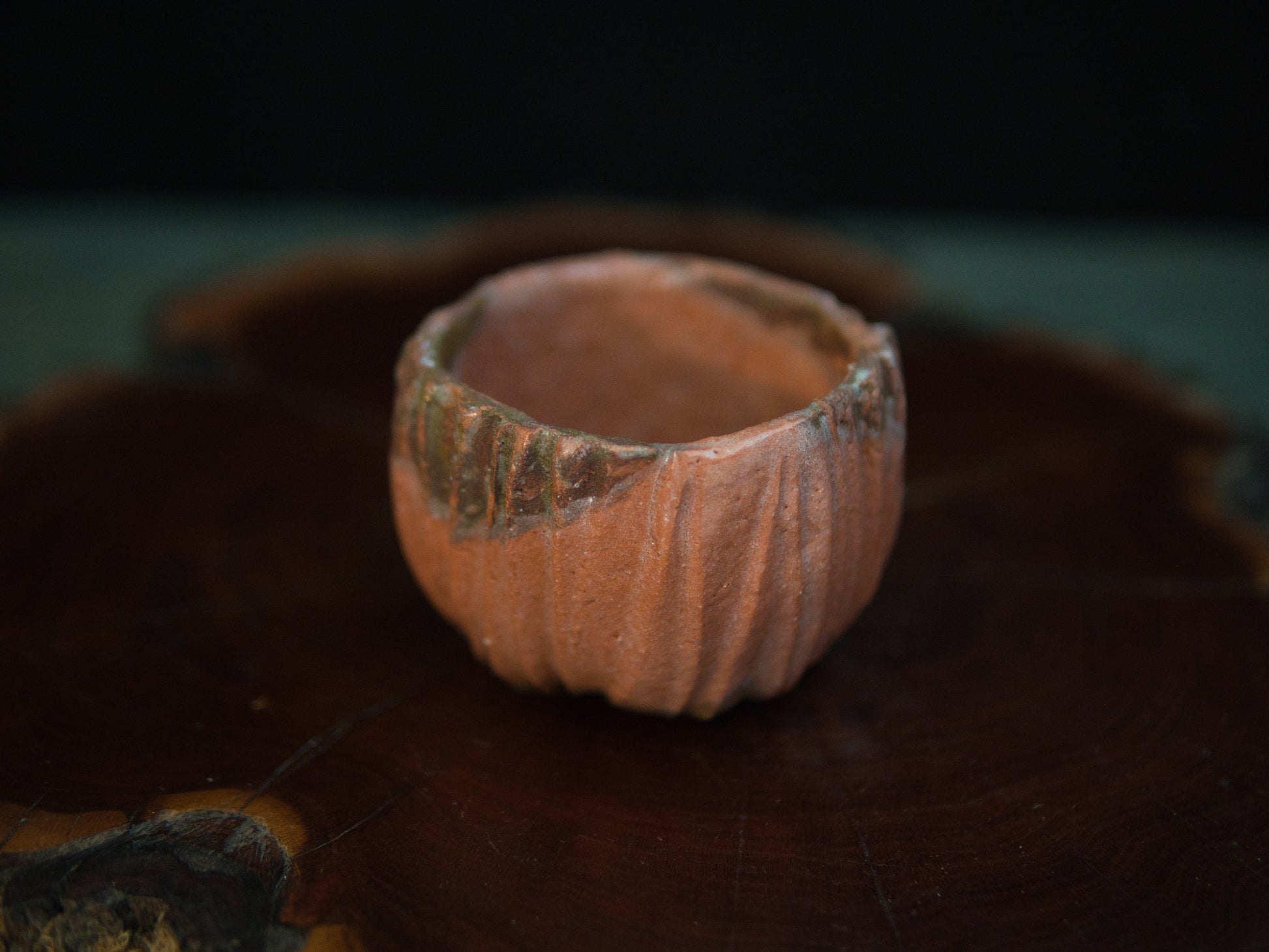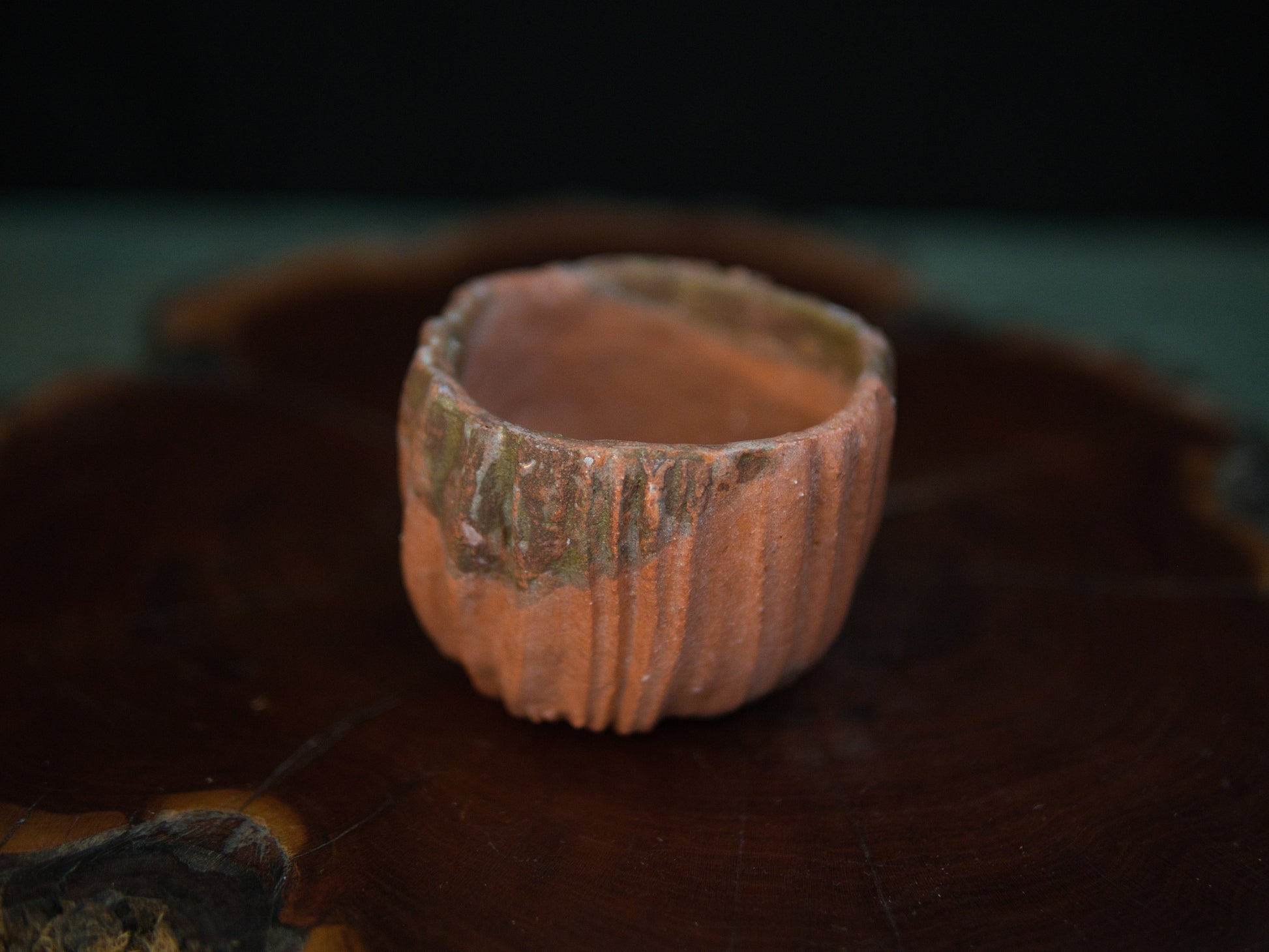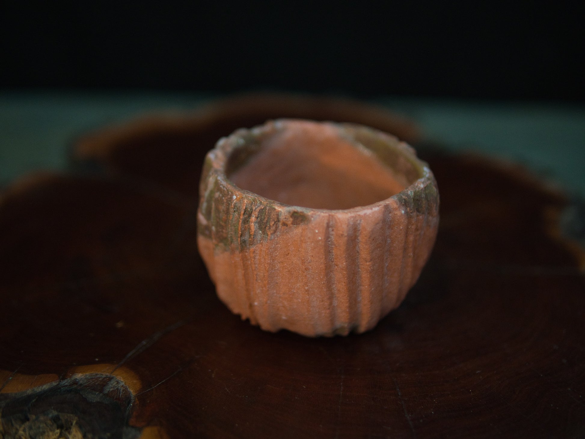 Aus dieser Idee entstand die Vorstellung von Erde, die sich im Stillen verwandelt, verdichtet und schließlich kristalline Formen annimmt. Die Oberfläche dieser Guinomi greift dieses Bild auf und verbindet die rohe Kraft des Tons mit einer stillen, fast meditativen Präsenz.