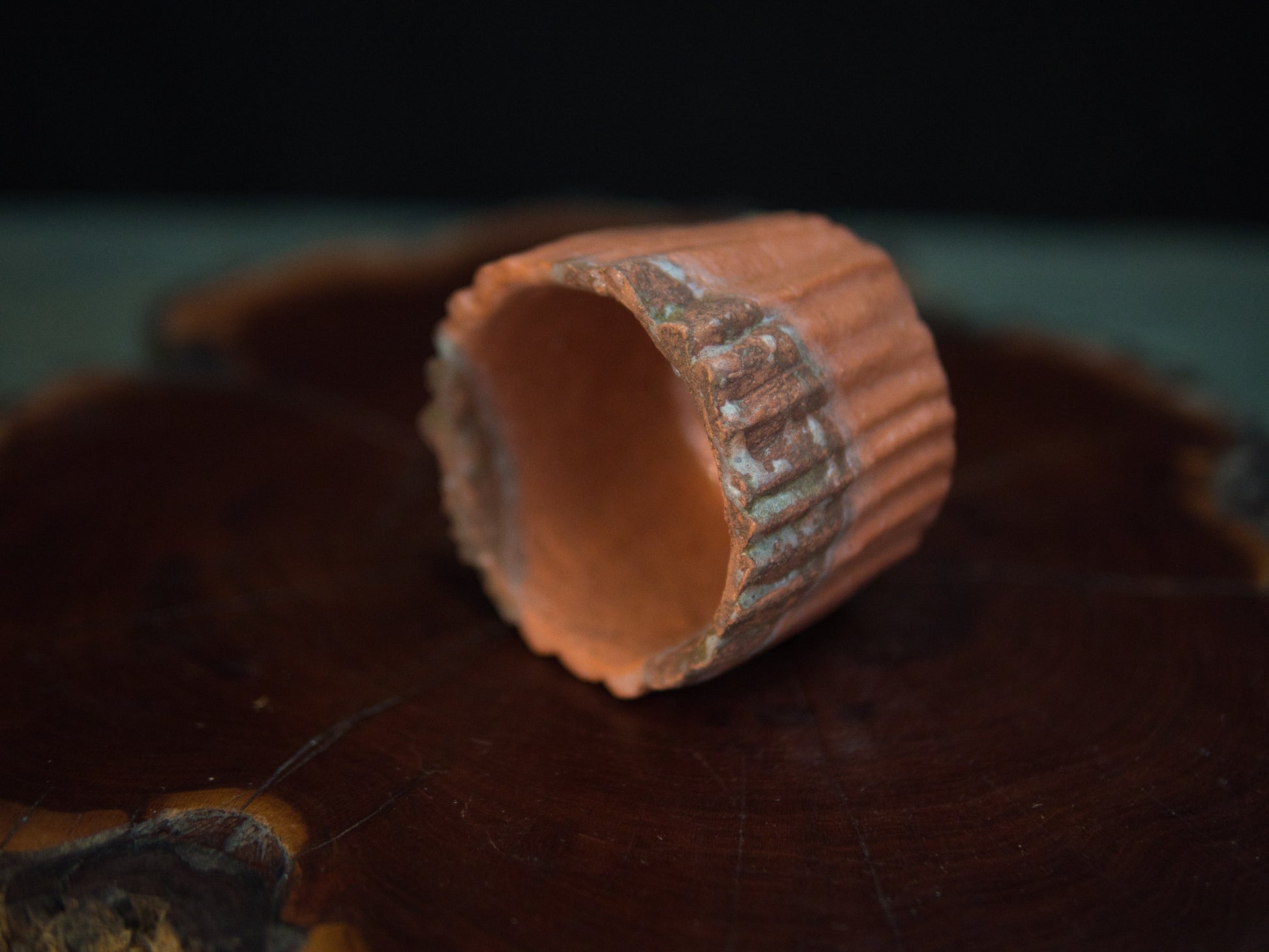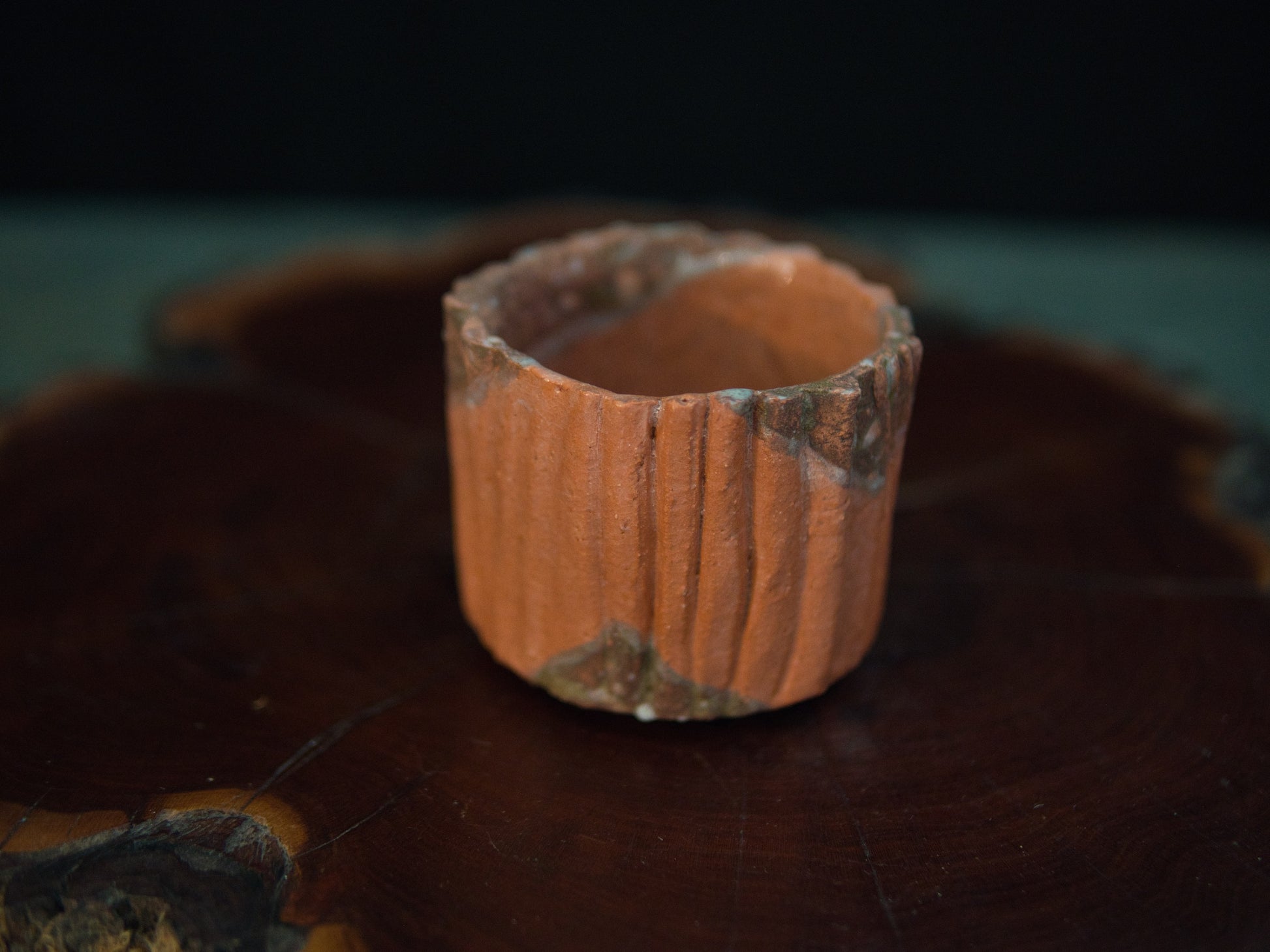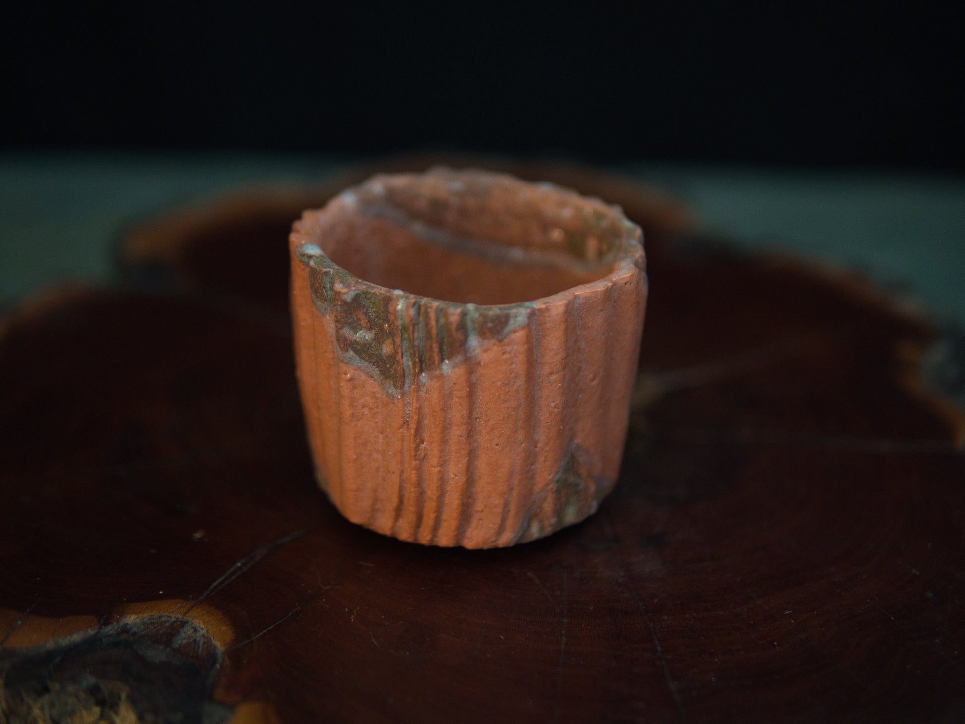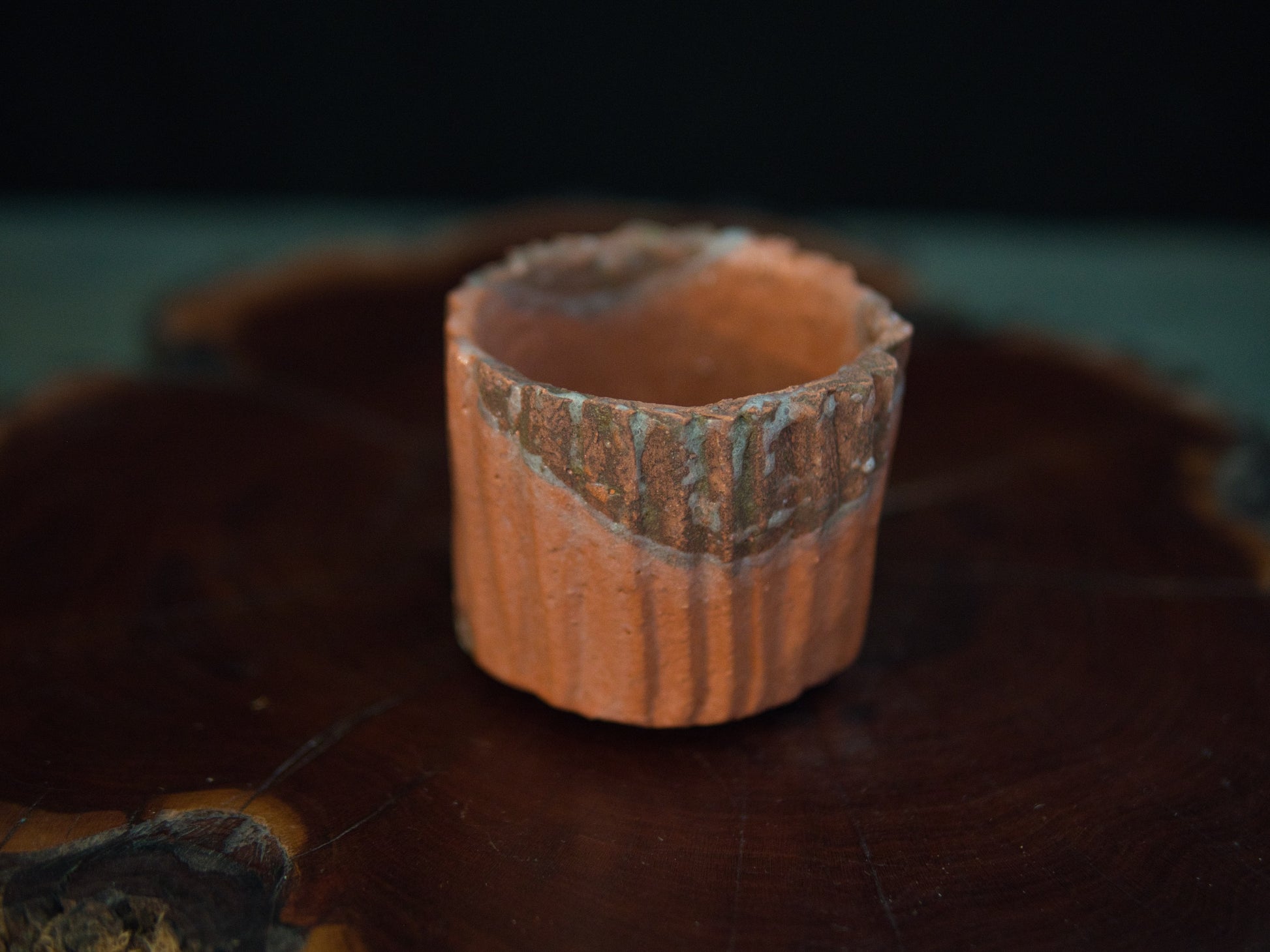 Aus dieser Idee entstand die Vorstellung von Erde, die sich im Stillen verwandelt, verdichtet und schließlich kristalline Formen annimmt. Die Oberfläche dieser Guinomi greift dieses Bild auf und verbindet die rohe Kraft des Tons mit einer stillen, fast meditativen Präsenz.